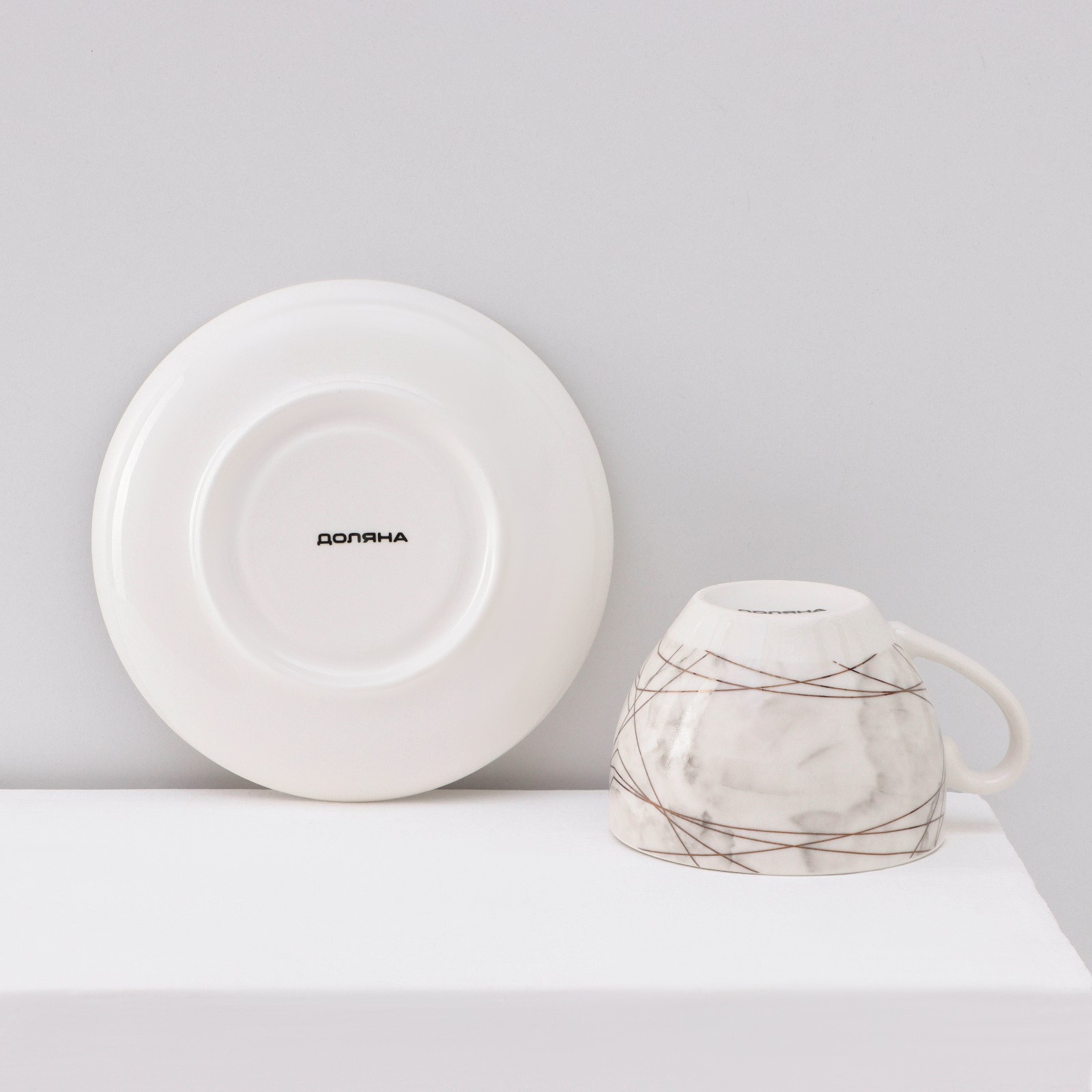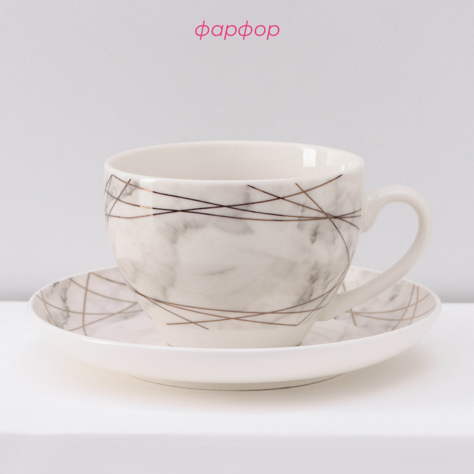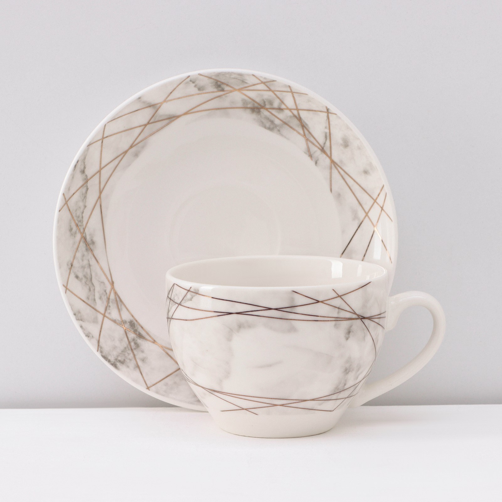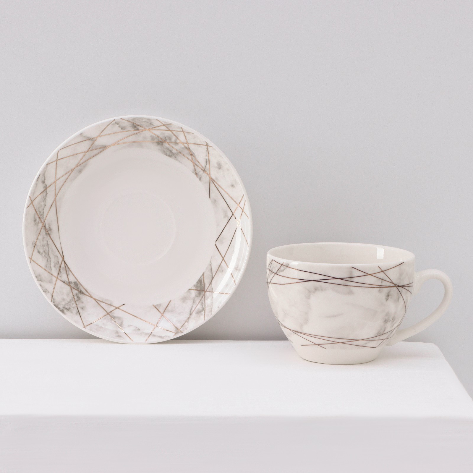 Сервиз фарфоровый чайный доляна «мрамор», 12 предметов: 6 чашек 280 мл, 6 блюдец D=15 см, цвет серый