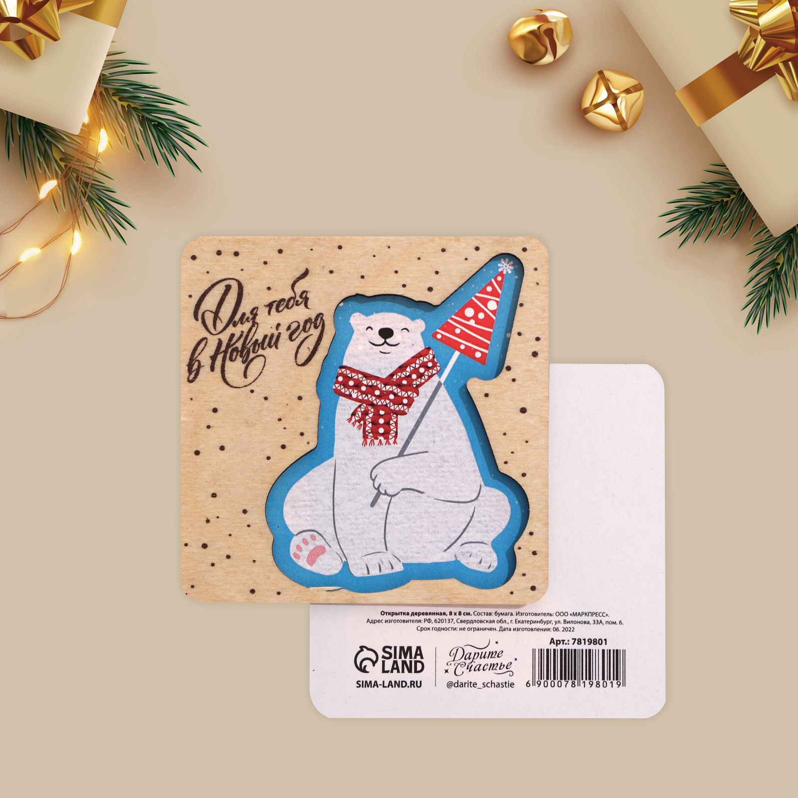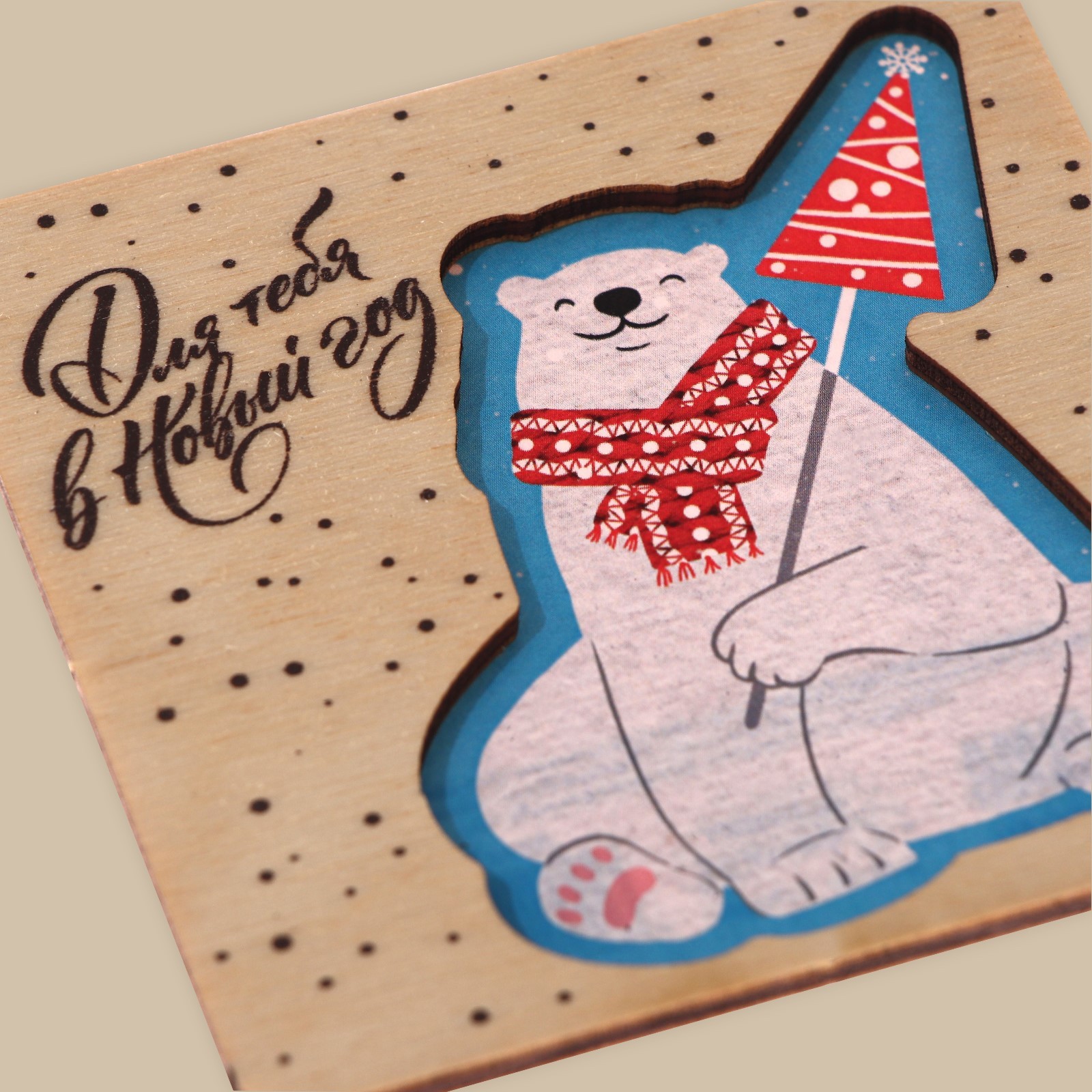 Открытка с новым годом деревянная «белый мишка», 8 х 8 см. Отделка:Деревянный элемент|Тематика:Новогодняя|Символ года:Нет|Тематика праздника:Новый год|Адресат:Без адресата|Вид открытки:Одинарная|Размер:Мини (до 8 см)|Форма:Квадрат|Страна:Россия  развернуть описание ▼