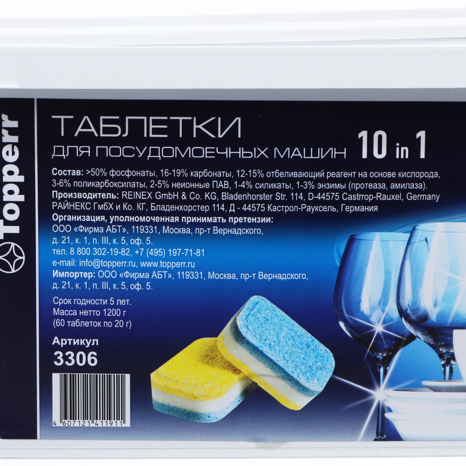 Таблетки для посудомоечных машин Topperr 10 в 1, 60 шт.