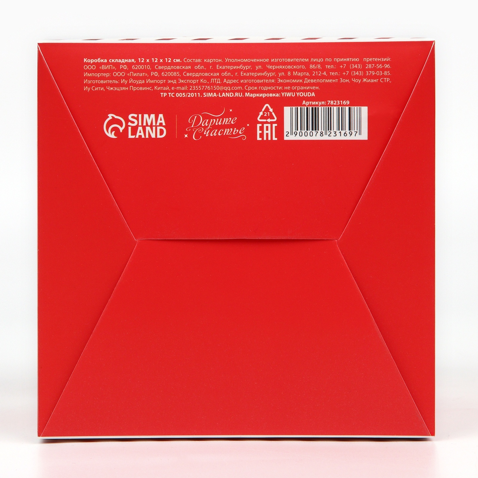Коробка подарочная новогодняя складная «с новым годом», 12 х 12 х 12 см. Форма:Куб|Плотность, г/м :250|Длина, см:12|Ширина, см:12|Высота, см:12|Допустимый вес вложения, г:350|Тематика:Новогодняя|Символ года:Нет|Тематика праздника:Новый год|Материал:Картон|Вид:Складные коробки|Размер:Малый (11-17 см)|Окошко:Нет|Крышка-дно:Нет|Страна:Китай  развернуть описание ▼