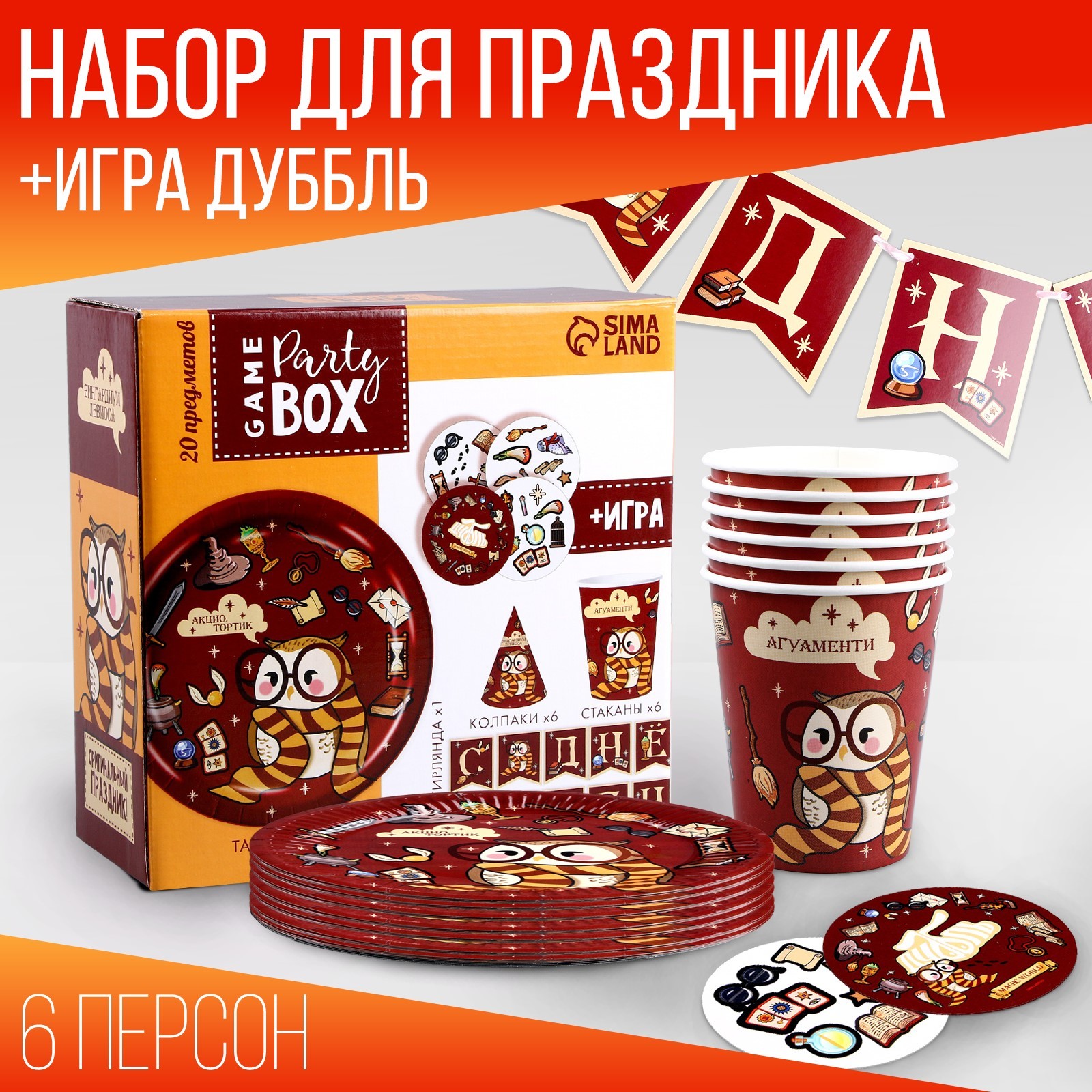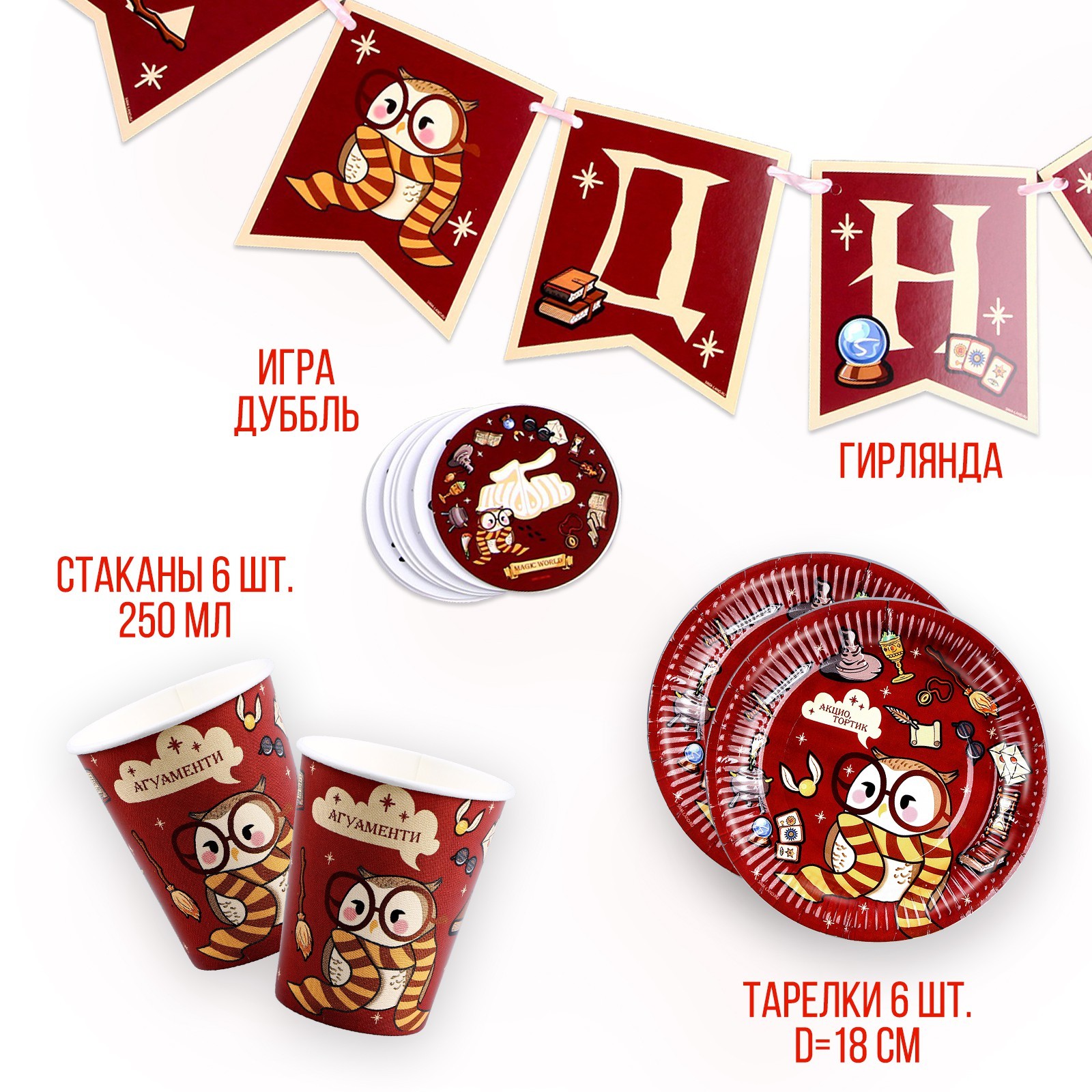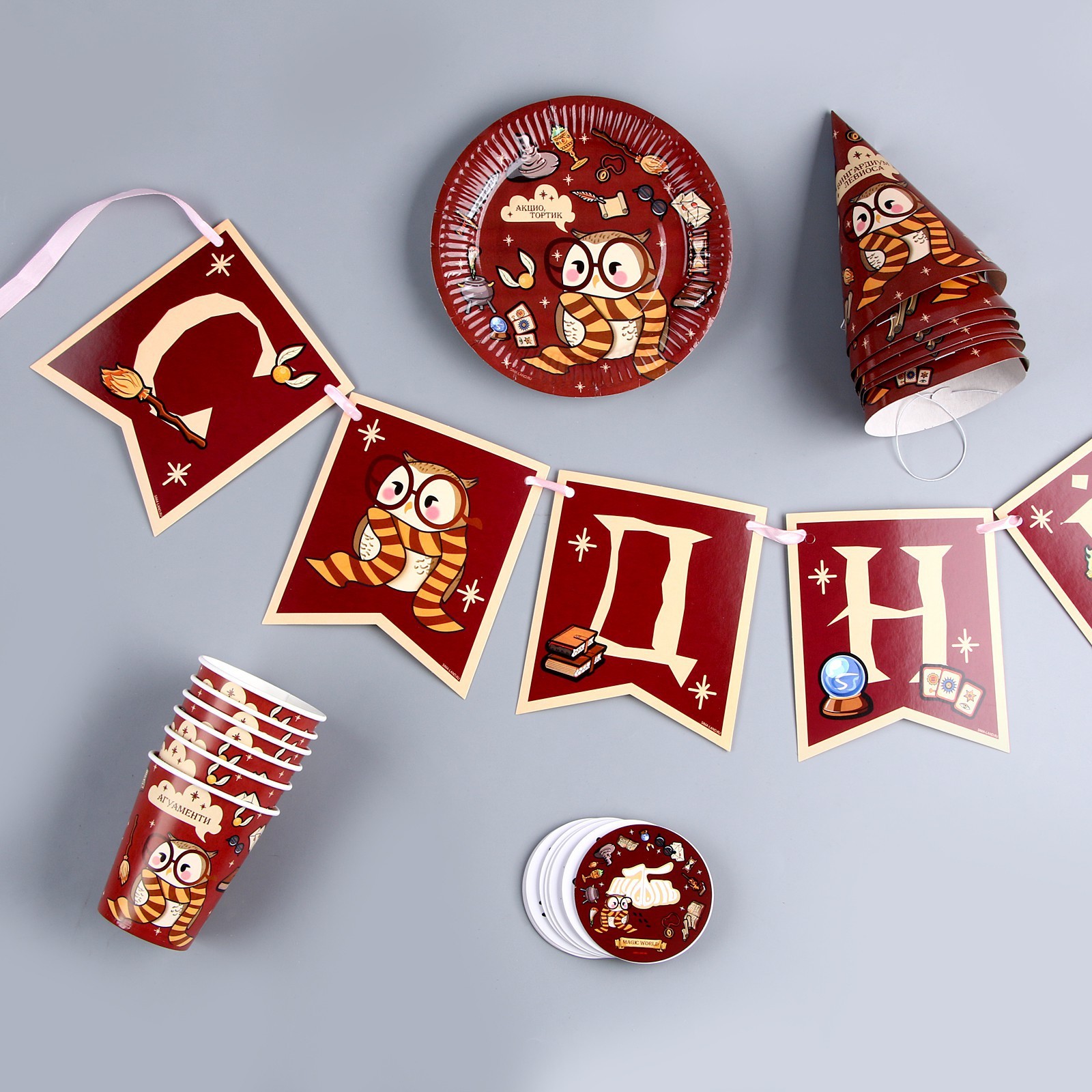Набор бумажной посуды одноразовый совушка»: 6 тарелок, 6 стаканов, 6 колпаков