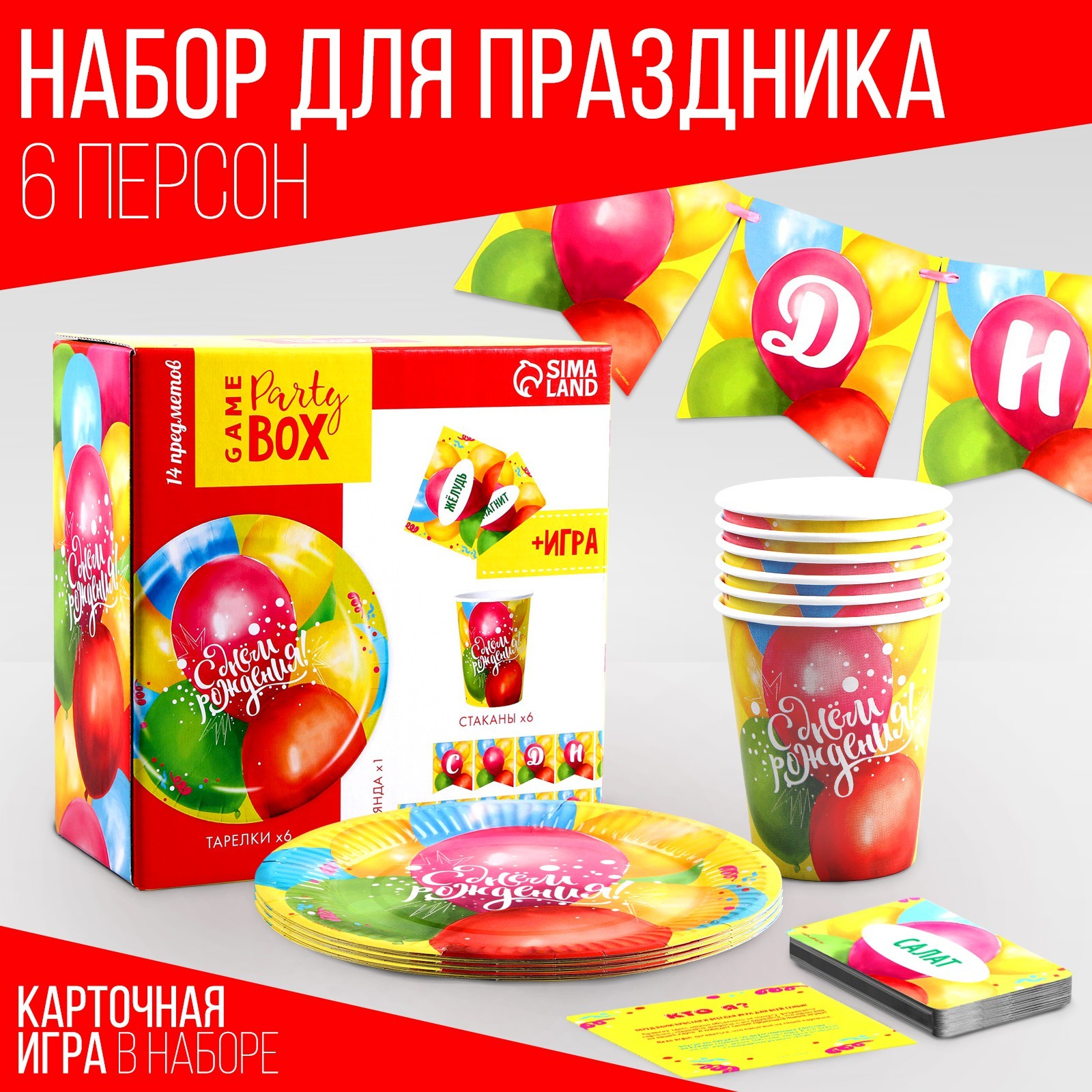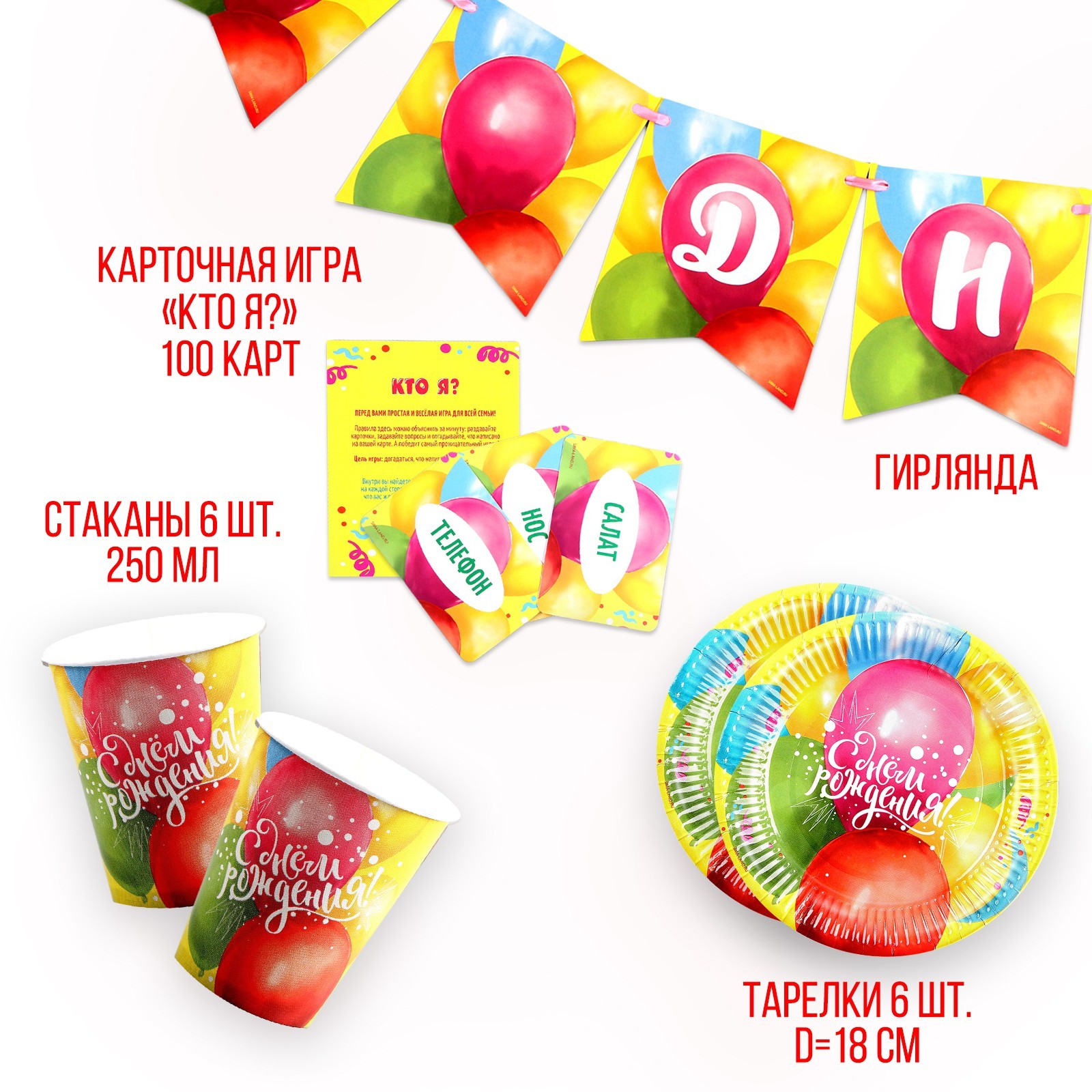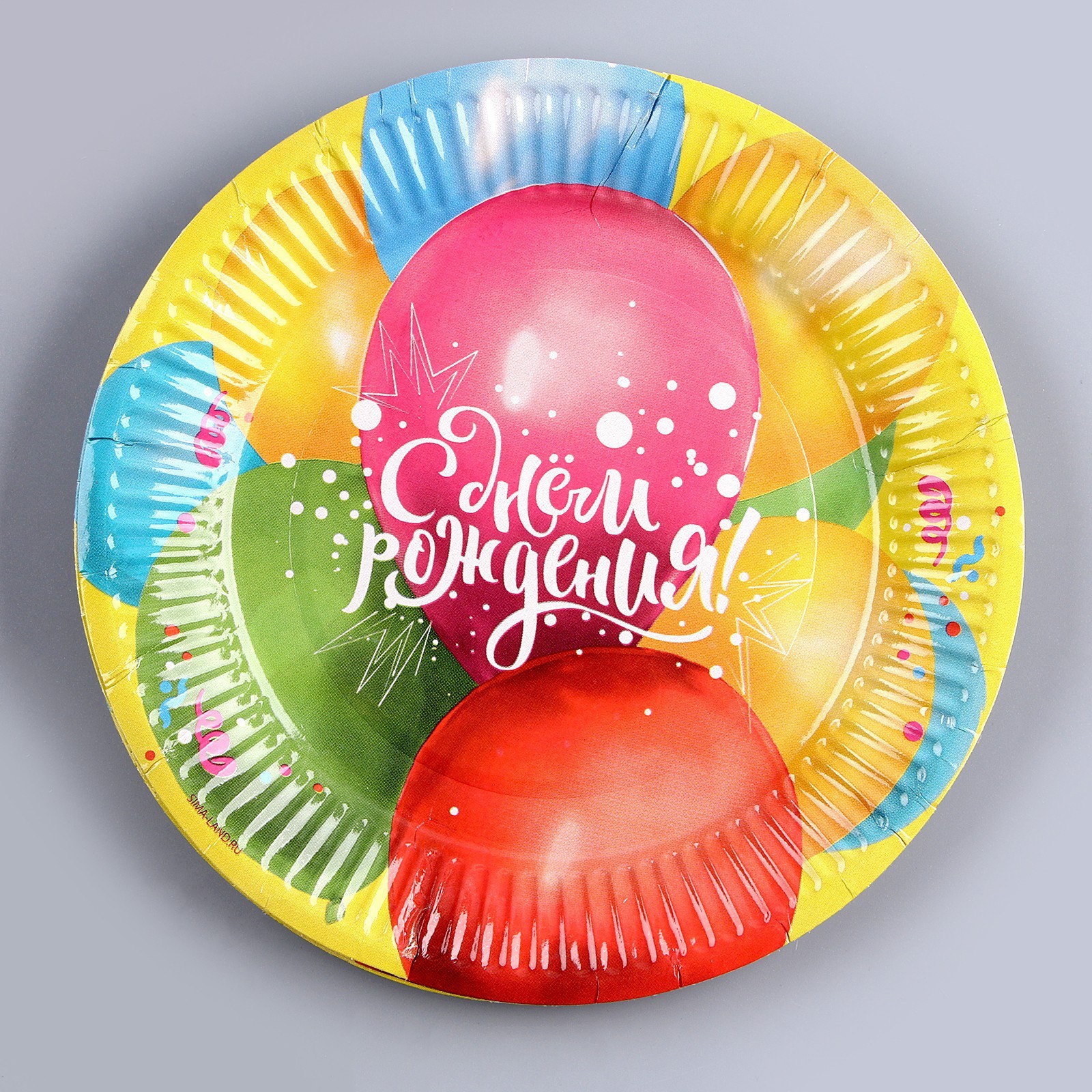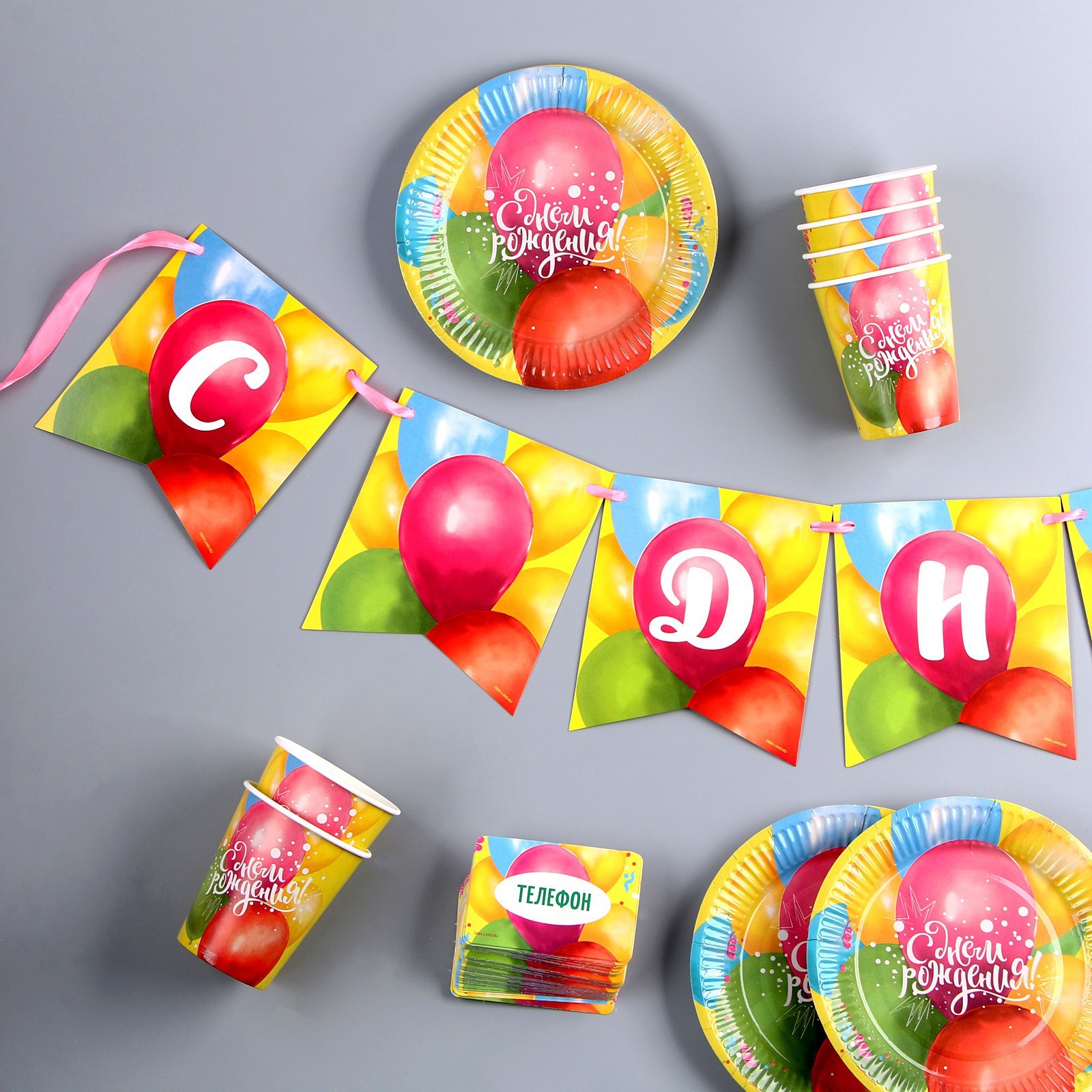 Набор бумажной посуды одноразовый с днём рождения. воздушные шары»: 6 тарелок, 6 стаканов