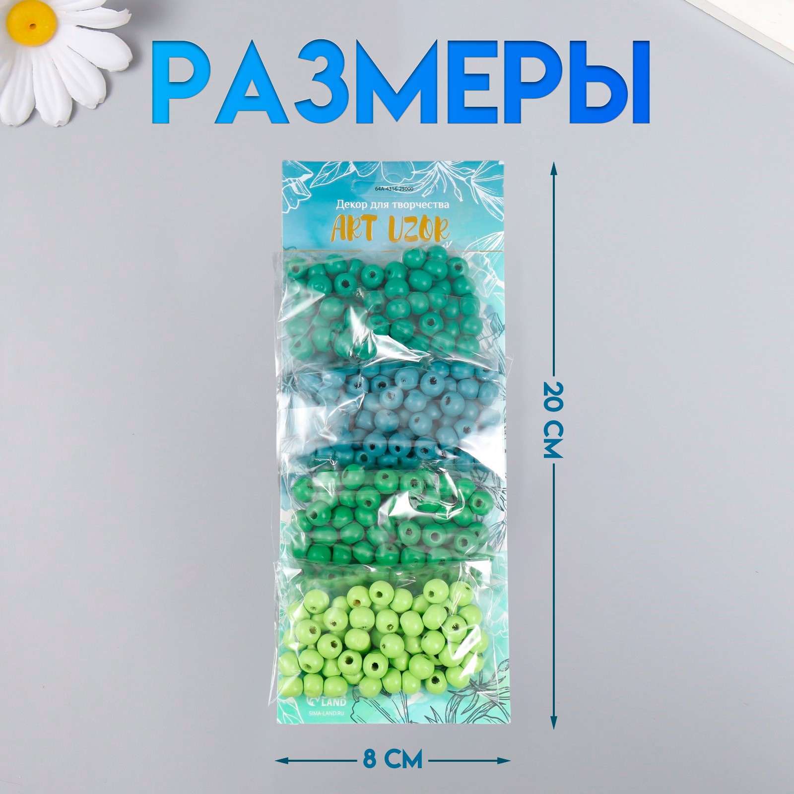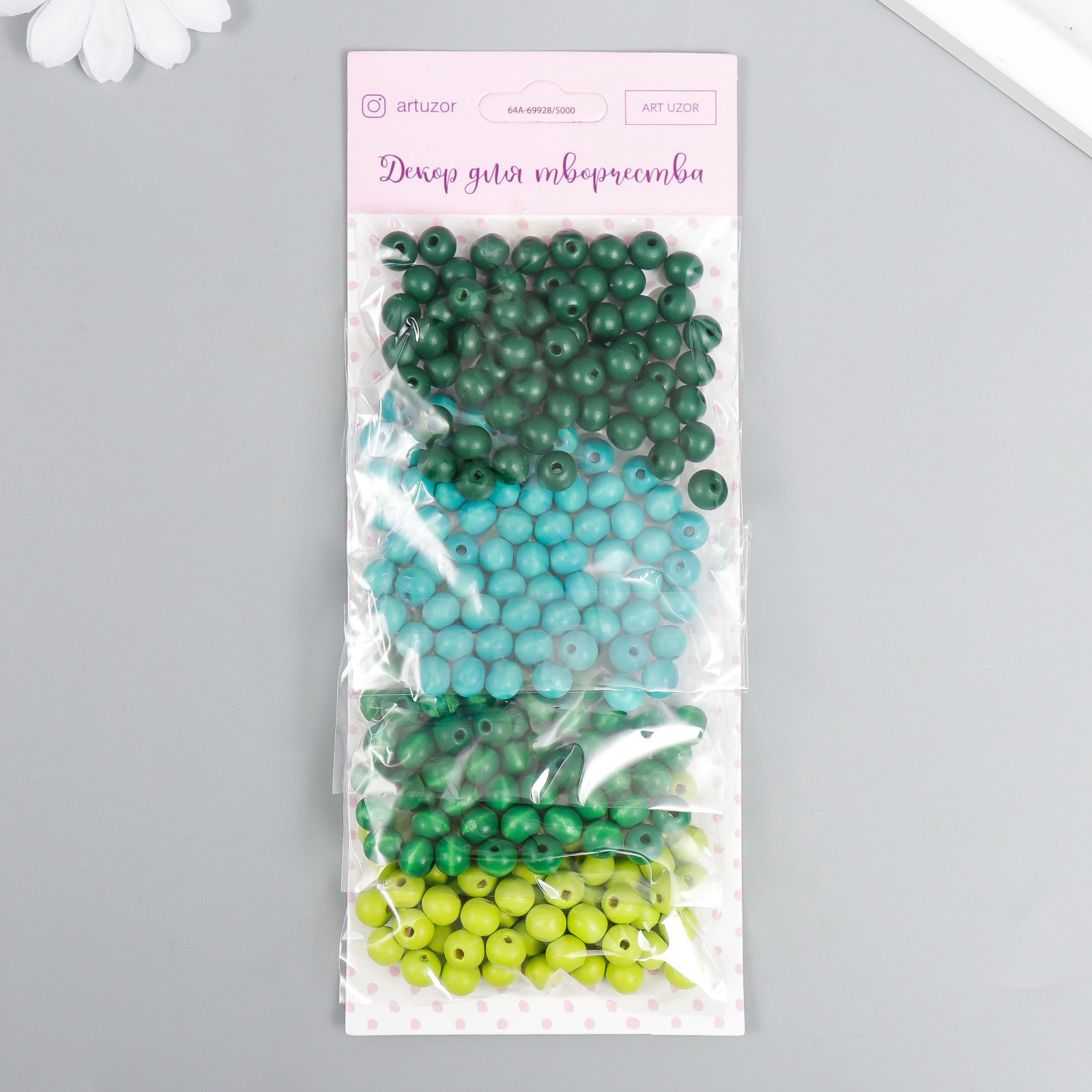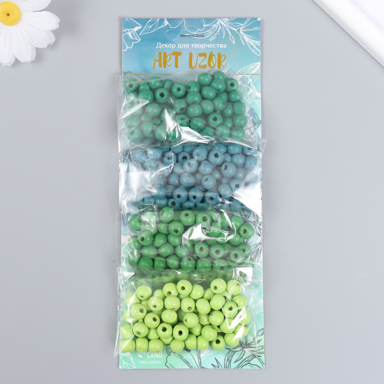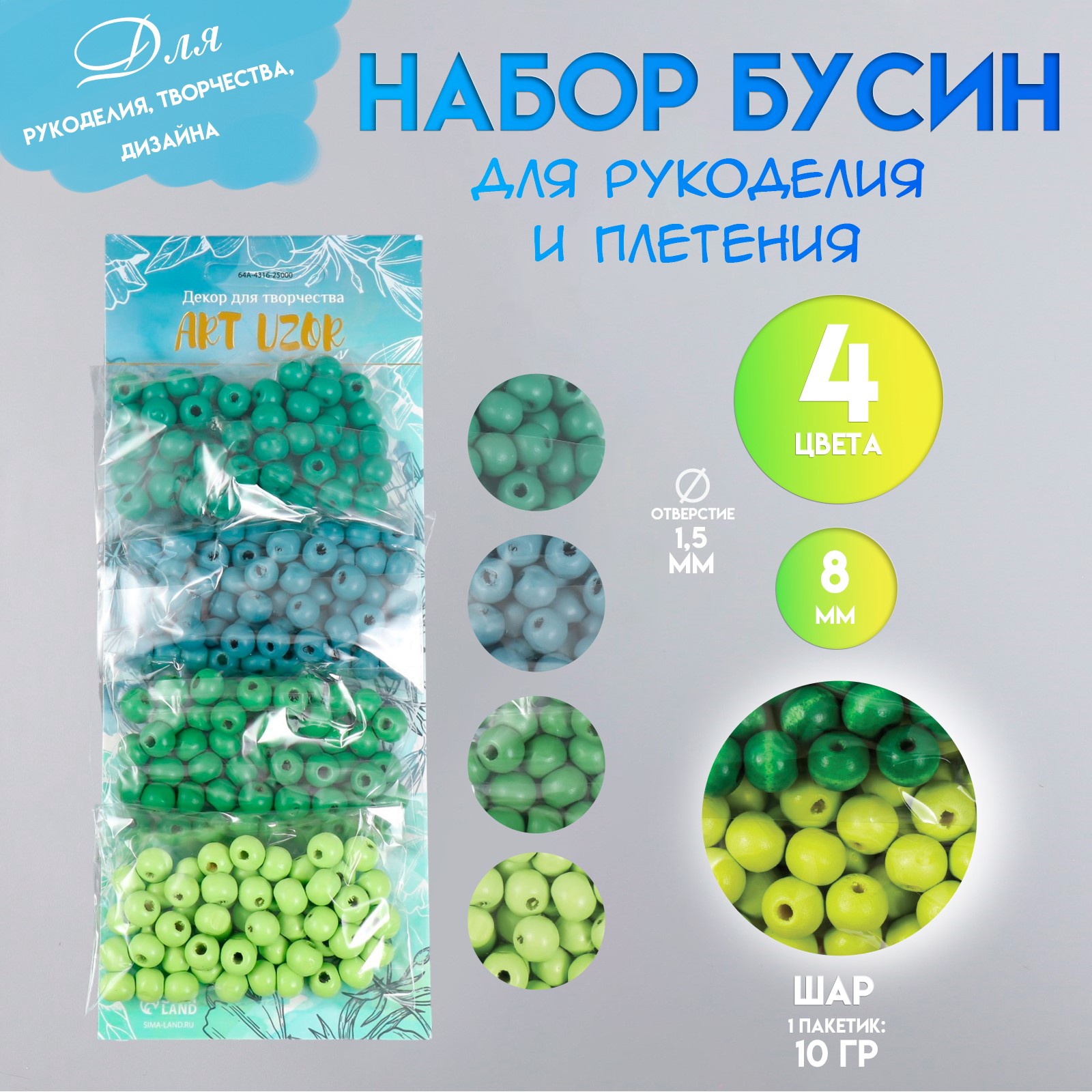 Набор бусин для рукоделия и плетения «арт узор. луговая гамма», дерево, D-0.8 см, 4 цвета 10 г