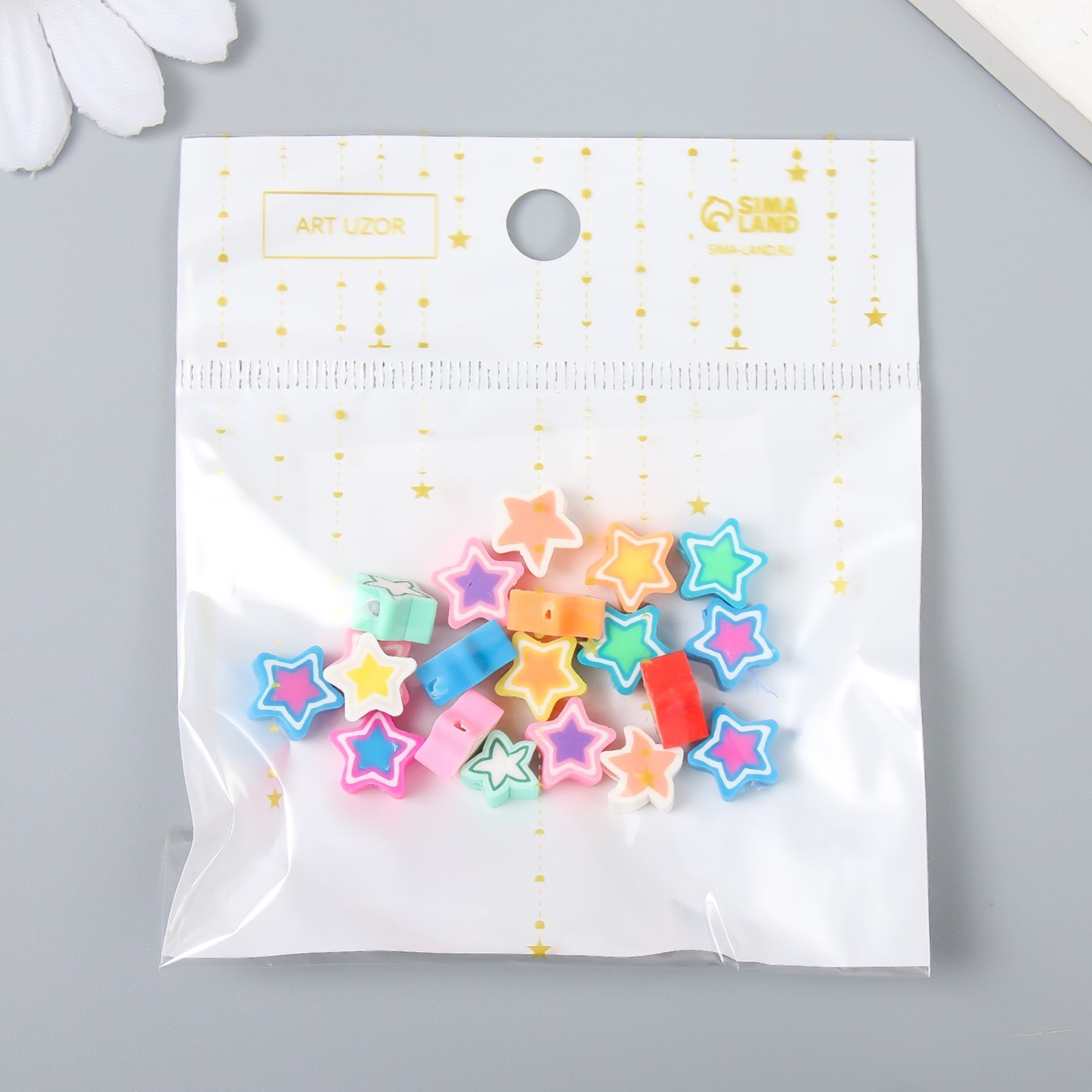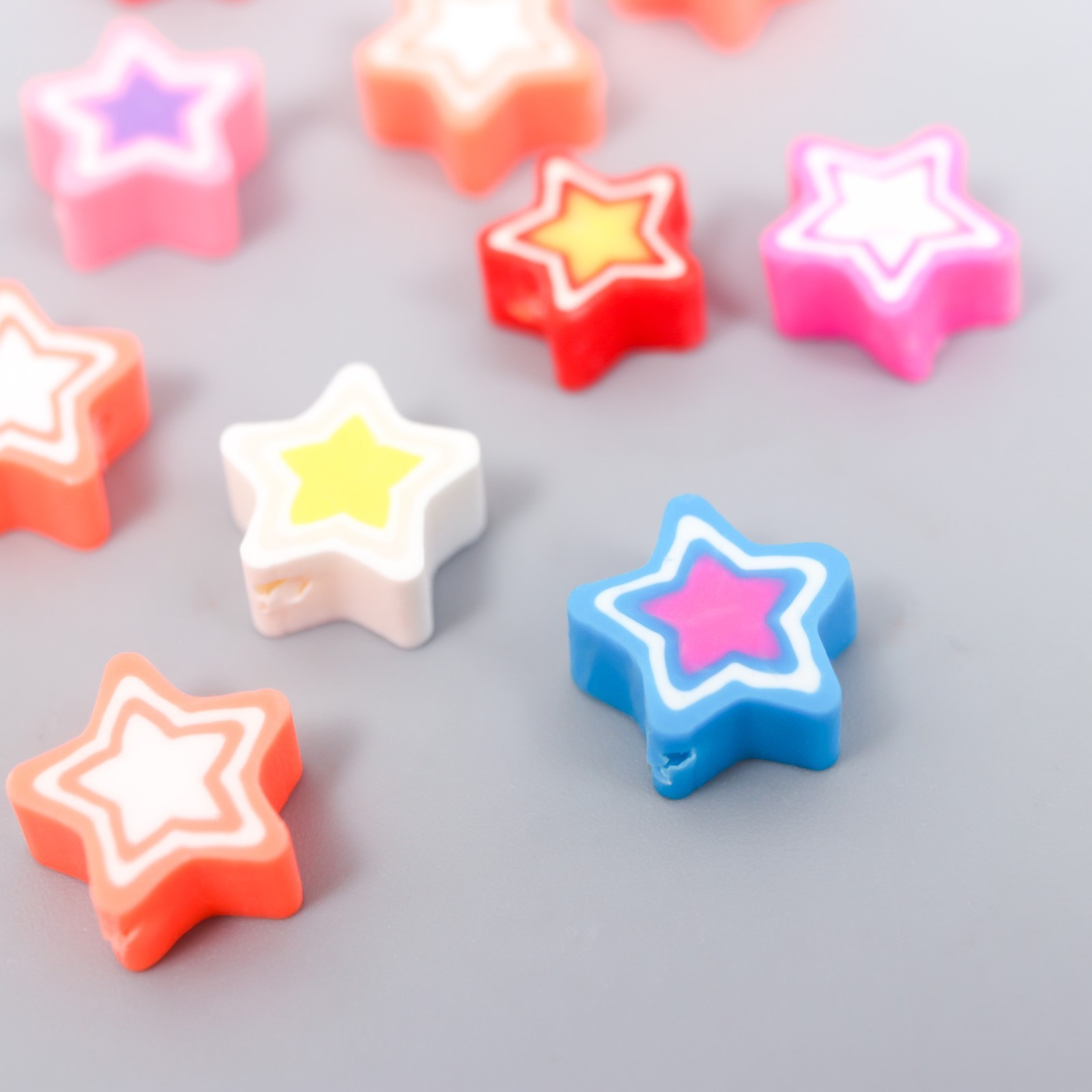 Набор бусин для рукоделия и плетения «арт узор. звёздочки с контуром», цветные, 20 шт., 1 1 1 см