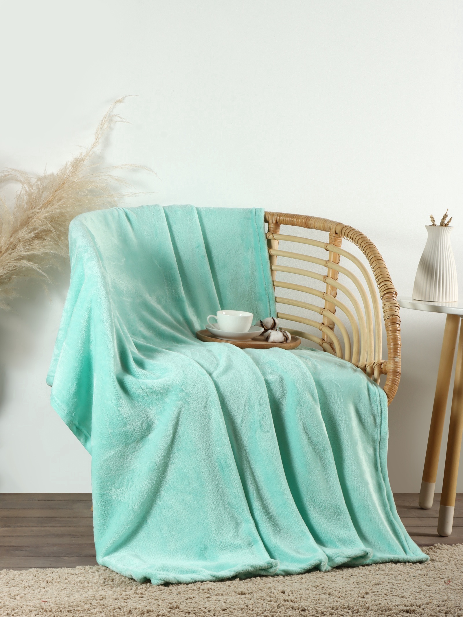 Плед «этель», 130 175 см, велсофт, бирюзовый