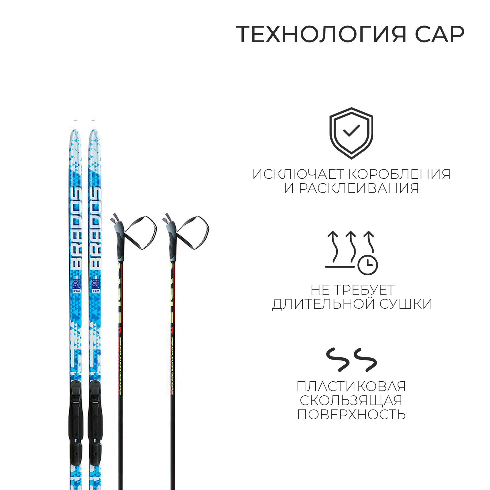 Комплект лыжный: пластиковые лыжи 190 см без насечек, стеклопластиковые палки 150 см, крепления sns, цвета микс. Занятия лыжным спортом — это превосходный способ поддержать свое тело в форме, привести мышцы в тонус, улучшить работу сердечно-сосудистой и дыхательной систем. Материал лыжных палок — стеклопластик — гарантирует спортсмену надёжность и прочность всей конструкции, увеличивая срок эксплуатации. Большим плюсом в данной модели является простота подготовки, предварительная обработка не требуется, достаточно встать и поехать. Характеристики: состав: технология САР. Клин деревянный. Скользящая поверхность: экструдированный ПЭ, геометрия 44. Палки из стеклопластика. длина лыж: 190 см;длина палок: 150 см;крепление SNS. Длина, см: 190 Материал: Пластик Насечка: Нет Стиль катания: Для классического хода Стиль катания: Комбинированный Тип крепления: SNS  развернуть описание ▼