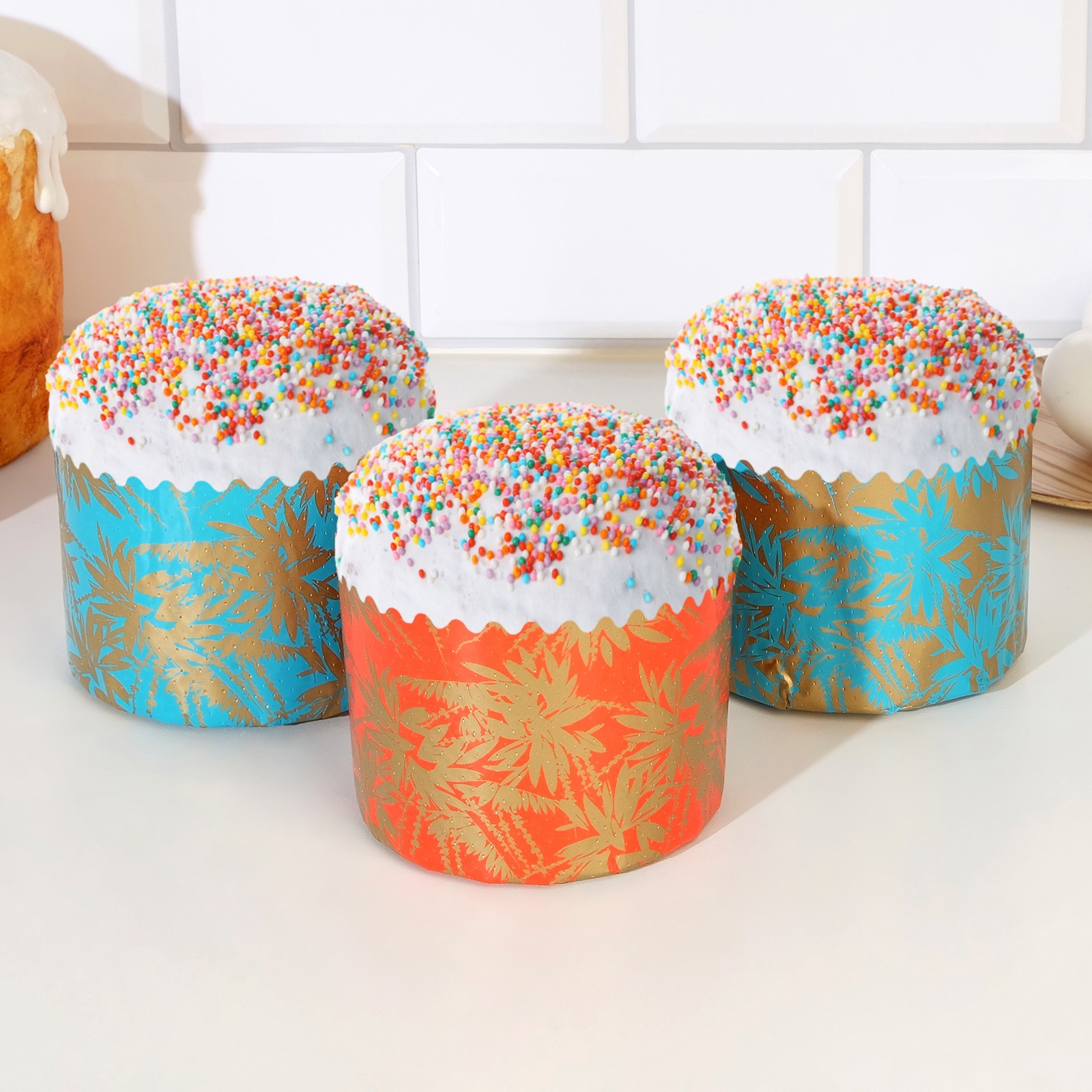 Форма бумажная для кулича "сказочный лес" 110 х 85 мм, микс (фасовка 1900 шт).