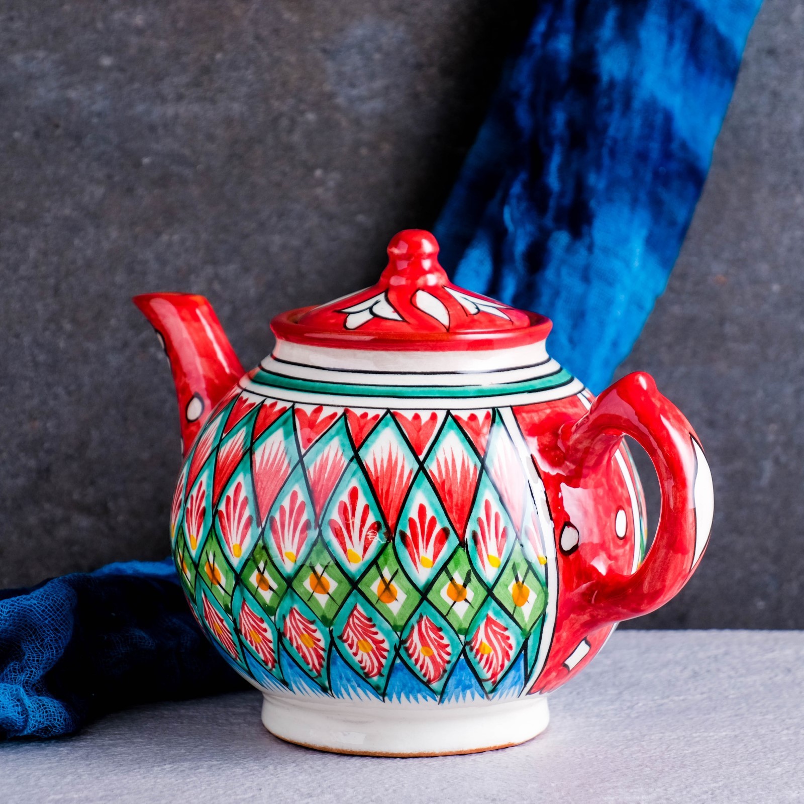 Чайник риштанская керамика "узоры", 800 мл, красный