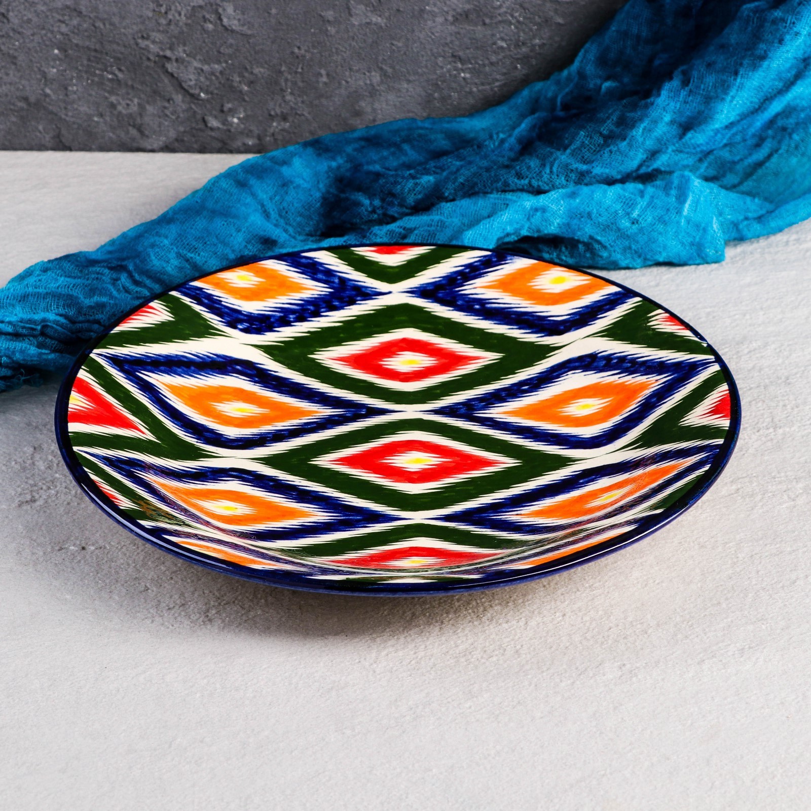 Тарелка риштанская керамика "атлас", плоская, 28 см
