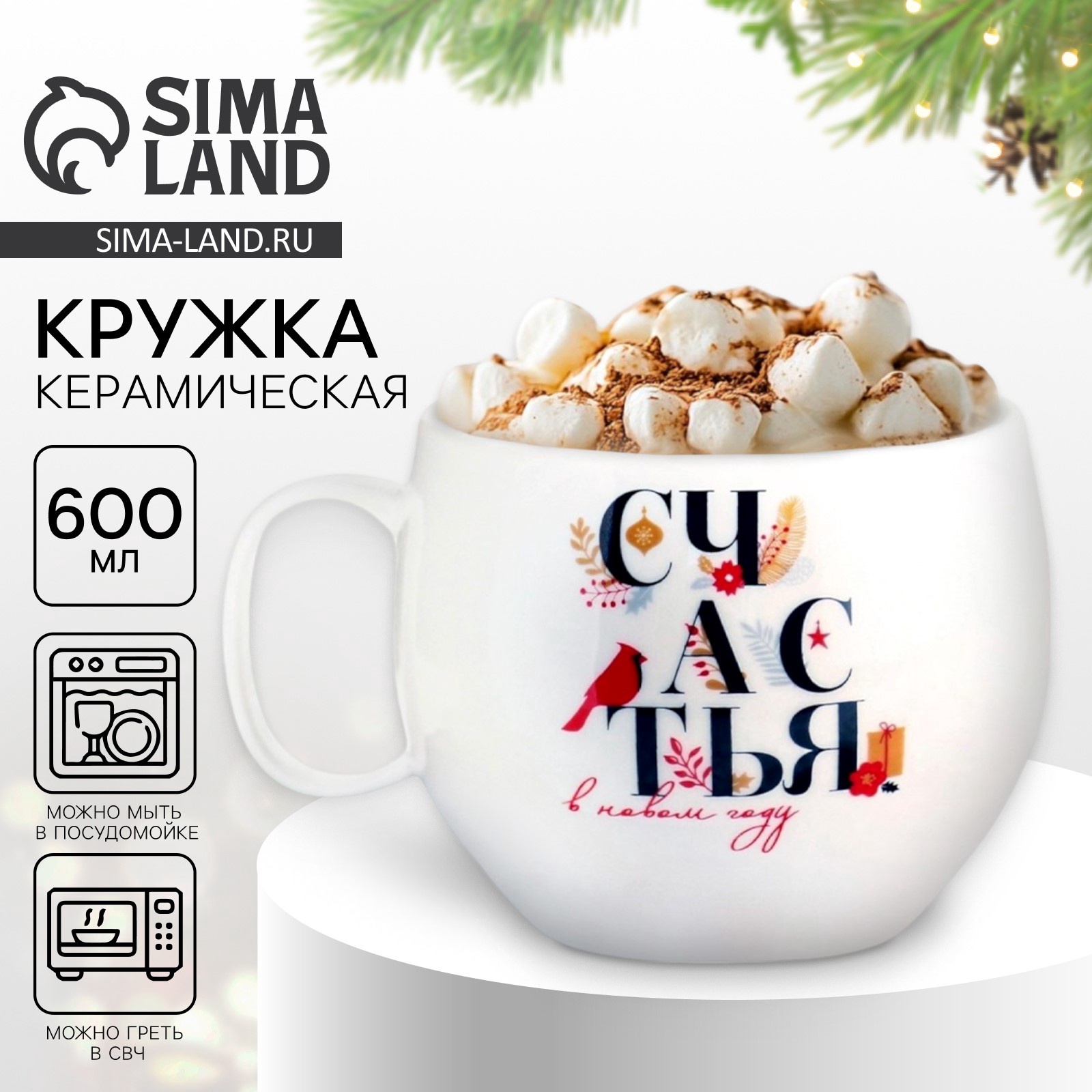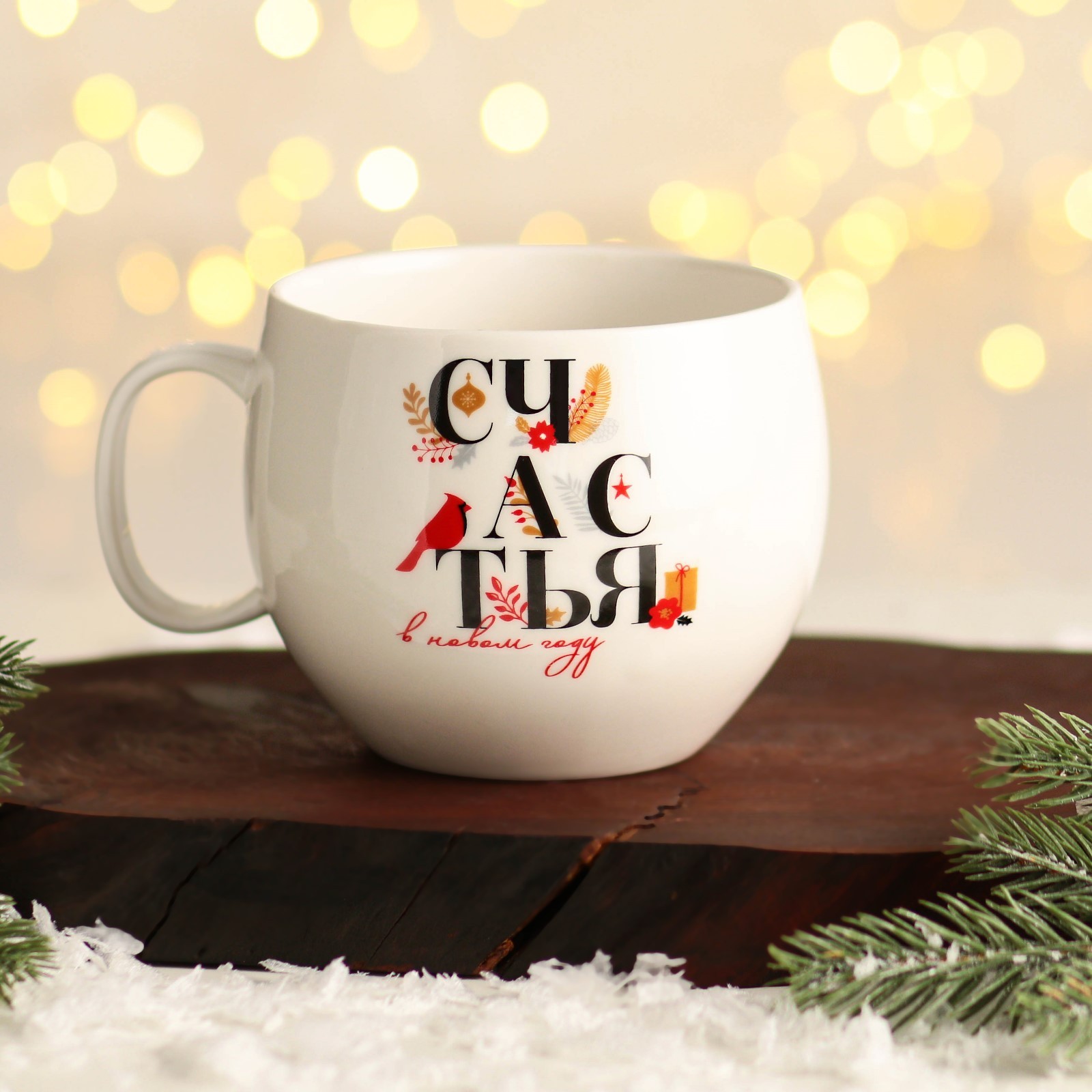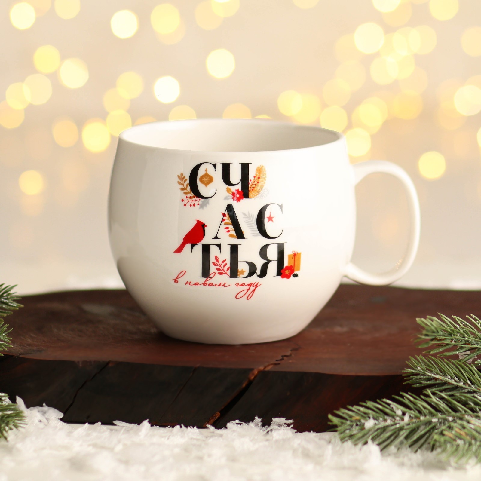 Кружка керамическая новогодняя «счастья в новом году», 600 мл