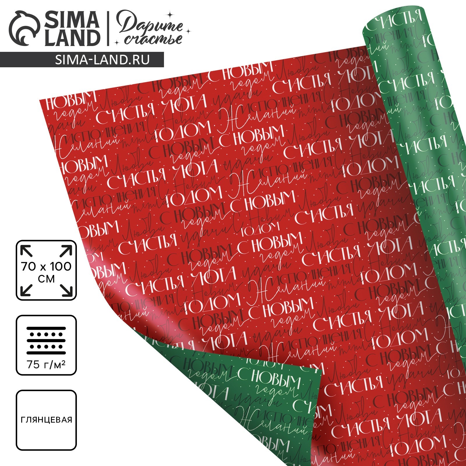 Упаковочная бумага на новый год глянцевая двухсторонняя «с новым годом», 70 х 100 см