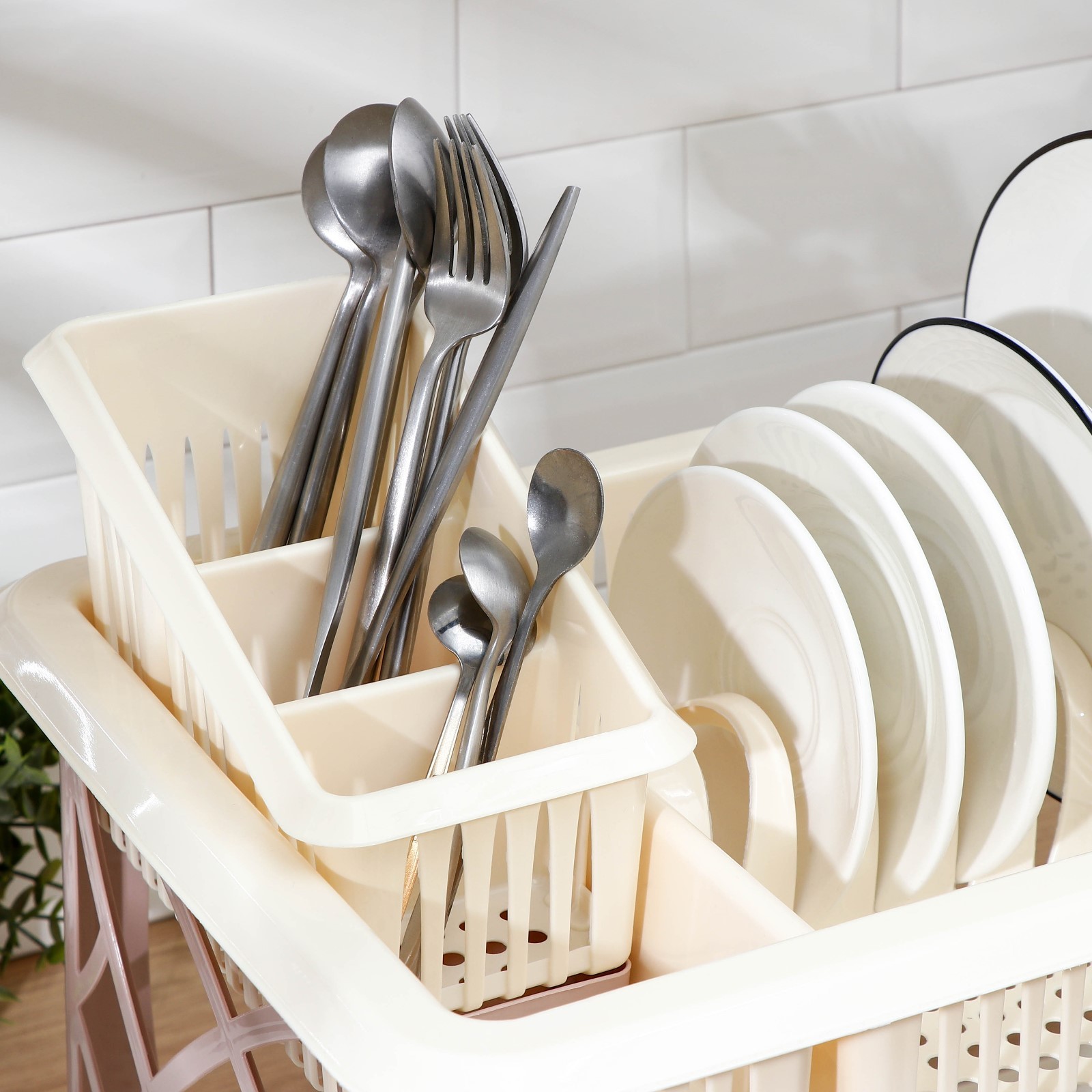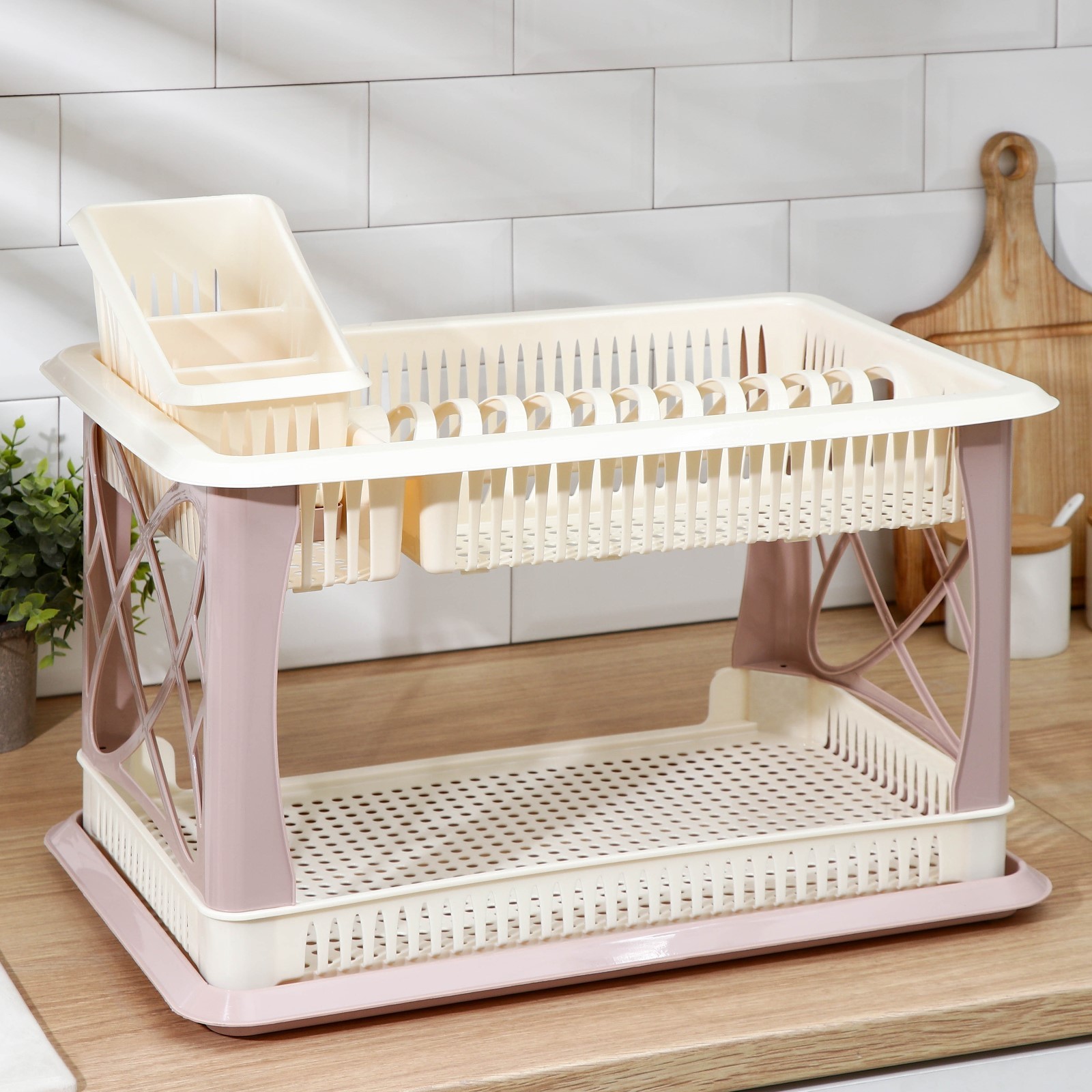 Сушилка для посуды 2-х ярусная, с сушилкой для столовых приборов, цвет шампань