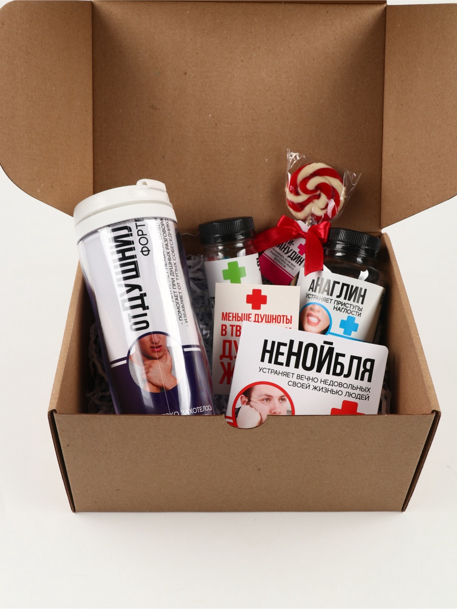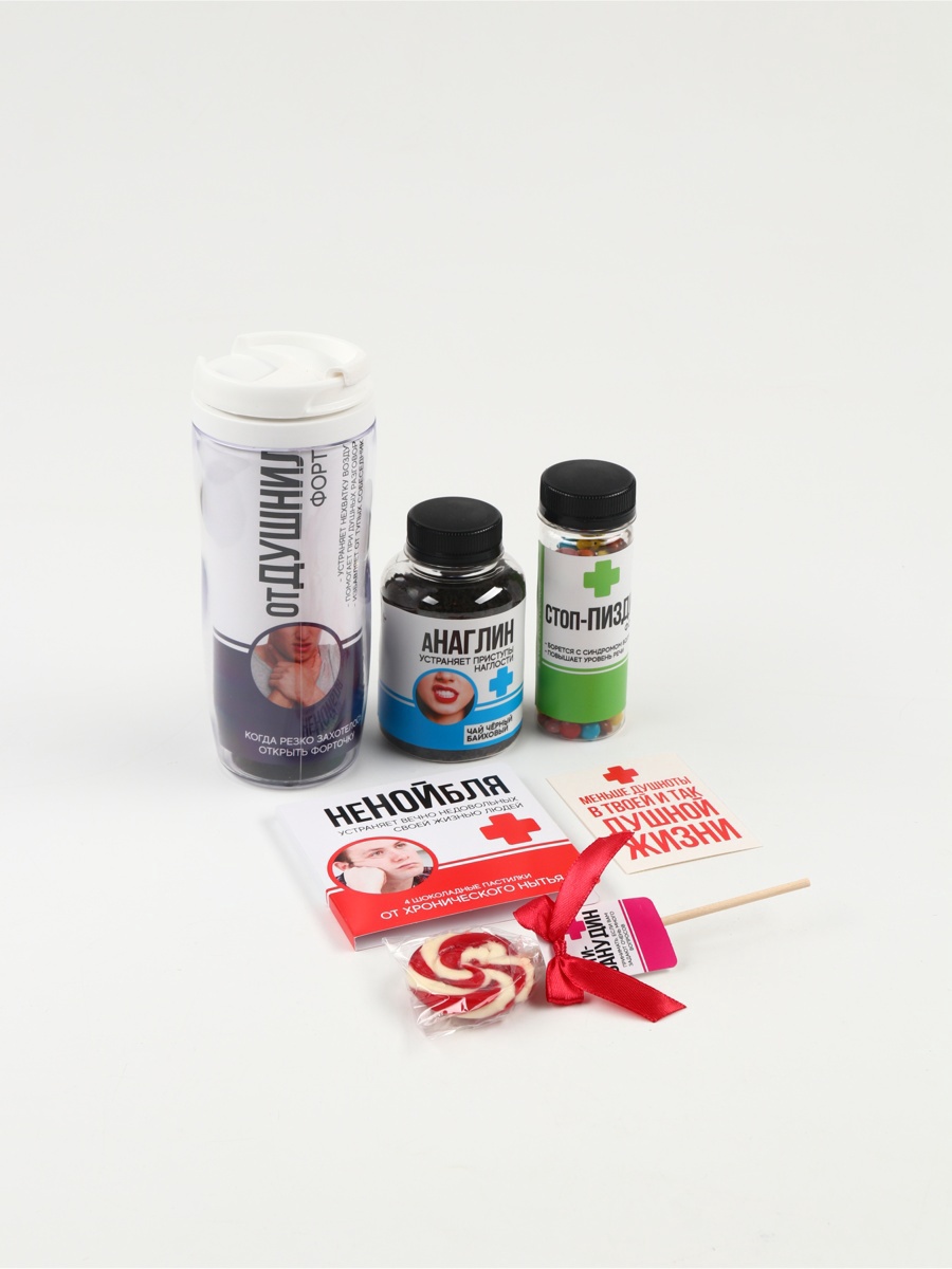 Подарочный набор гифтбокс «аптечка»: чай, драже, шоколад, термостакан, леденец. ПРИ ОФОРМЛЕНИИ ЗАКАЗА, ПРОСИМ ЗАПРАШИВАТЬ АКТУАЛЬНЫЕ СРОКИ ГОДНОСТИ У МЕНЕДЖЕРА. Чай чёрный байховый Состав: чай чёрный байховый. Масса нетто: 50 г. Карамель леденцовая фигурная на палочке со вкусом дыни Состав: сахар, глюкозный сироп, вода, регулятор кислотности – лимонная кислота, натуральный ароматизатор – дыня, красители. Масса нетто: 15 г. Драже молочное с какао в сахарной глазури «Пти Бон» Состав: сахар, пальмовое масло, сыворотка сухая молочная, какао-порошок, какао тёртое, молоко сухое обезжиренное, молоко сухое, эмульгатор – соевый лецитин, соль, загуститель – желатин, пищевые красители: Е120, Е133, Е141, Е160С, Е171; глянцеватель – капол, ароматизатор. Масса нетто: 80 г. Шоколад молочный. Состав: сахар, какао-масло, сухие молочные продукты, какао тёртое, какао-порошок, эмульгаторы (лецитин соевый – Е322, PGPR – Е476), ароматизатор пищевой «Ванилин». Содержание какао-продуктов: не менее 37 %. Масса нетто: 20 г (4 шт. х 5 г). Термостакан, 350 мл Состав: полипропилен. Набор:Да|Цвет:Красный|Для кого:Унисекс|В наборе, шт.:7|Вид упаковки:Подарочная коробка|Тематика праздника:Универсальная тематика|Адресат:Без адресата|Составляющие набора:Чай|Составляющие набора:Драже|Составляющие набора:Термостакан|Составляющие набора:Леденцы|Составляющие набора:Шоколад|Темпер. ограничение НЕ ВЫШЕ :+25|Страна:Россия  развернуть описание ▼