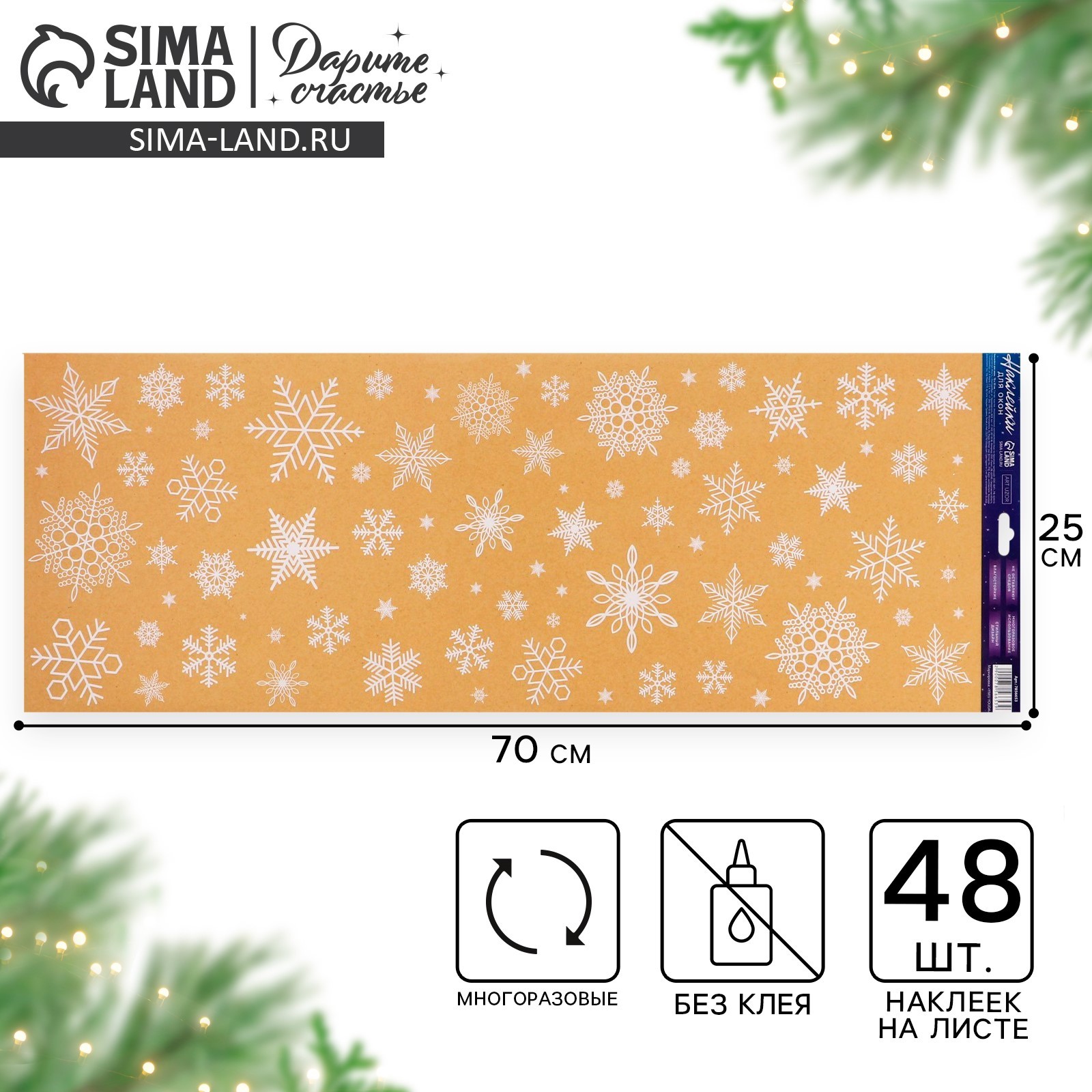 Наклейки на окна многоразовые «с новым годом», снежинки, 70 х 25 см