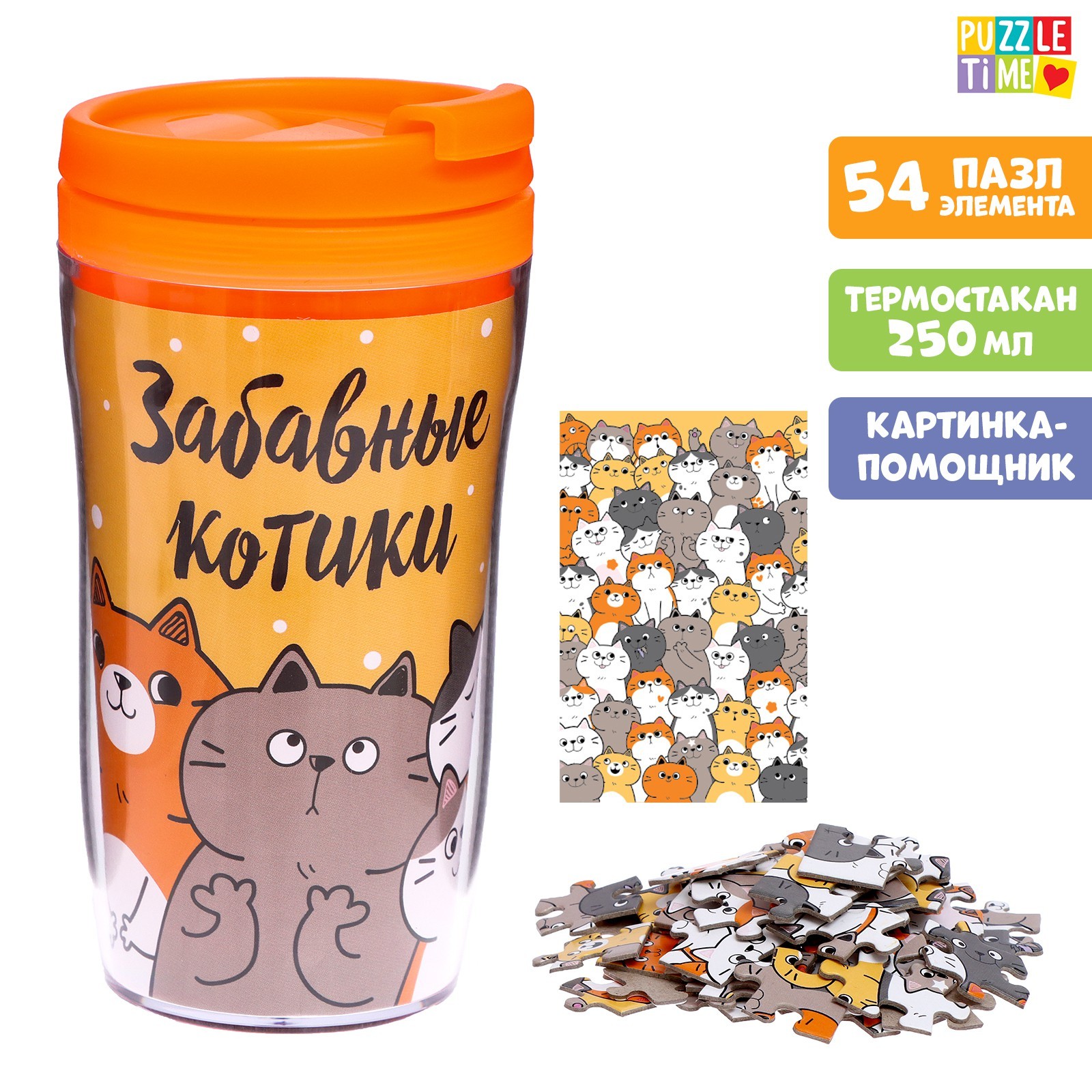 Термостакан с пазлом «милые котики», 54 элемента, 250 мл