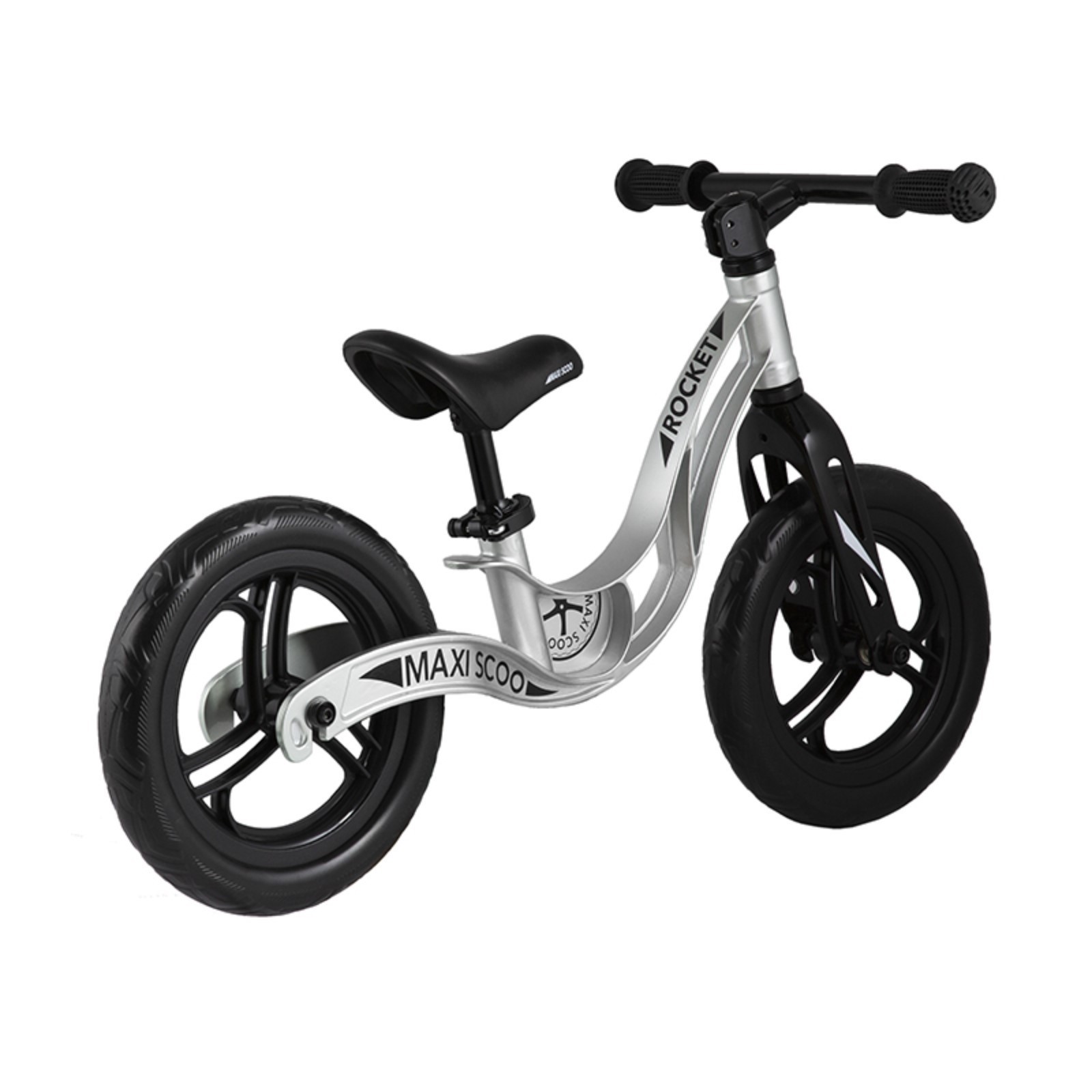 Беговел 12" maxiscoo rocket, цвет серебро. Детский беговел на облегчённой магниевой раме идеально подходит для прогулок на свежем воздухе по ровным дорогам. Развивает у ребёнка координацию движений, чувства равновесия и баланса. Модель укомплектована алюминиевым рулём со встроенным ограничителем поворота для обеспечения дополнительной безопасности. Покрышки колёс изготовлены из материала EVA. Цвет: Серебристый Для кого: Унисекс Максимально допустимый вес, кг: 25 Модельный год: 2022 Материал рамы: Магниевый сплав Диаметр колёс, дюймы: 12 Материал колёс: EVA Рекомендуемый возраст, лет: 2.5 - 4 Рекомендуемый рост, см: 90 - 105 Наличие тормоза: Нет  развернуть описание ▼