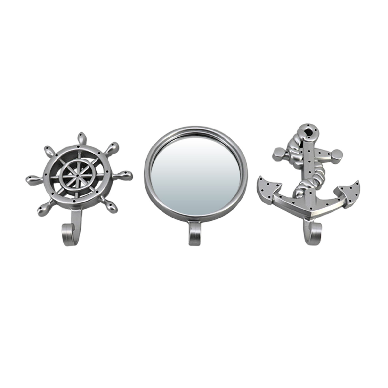 Набор крючков с зеркалом Qwerty «марсель», декоративный, 3 шт, D=8 см, цвет серебро