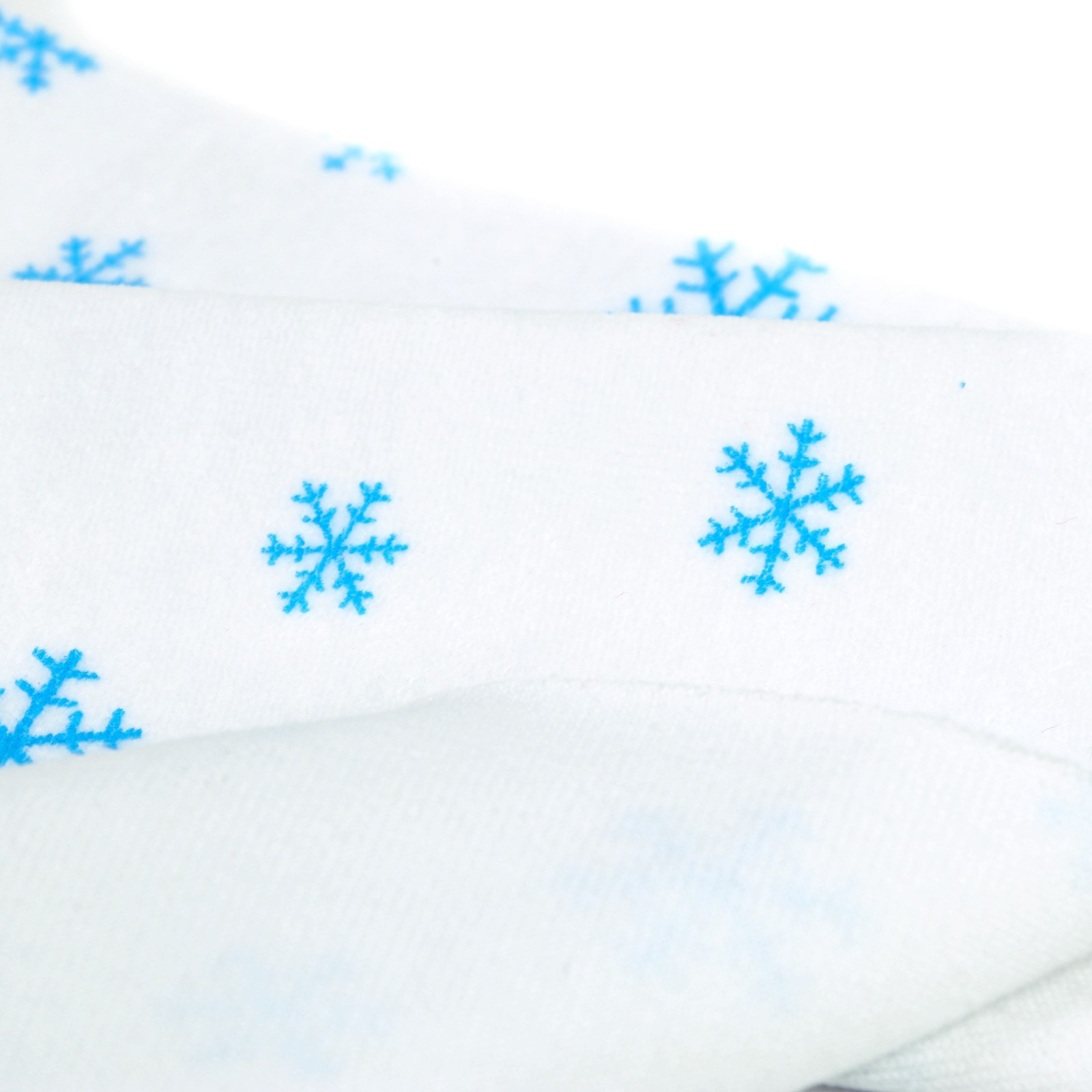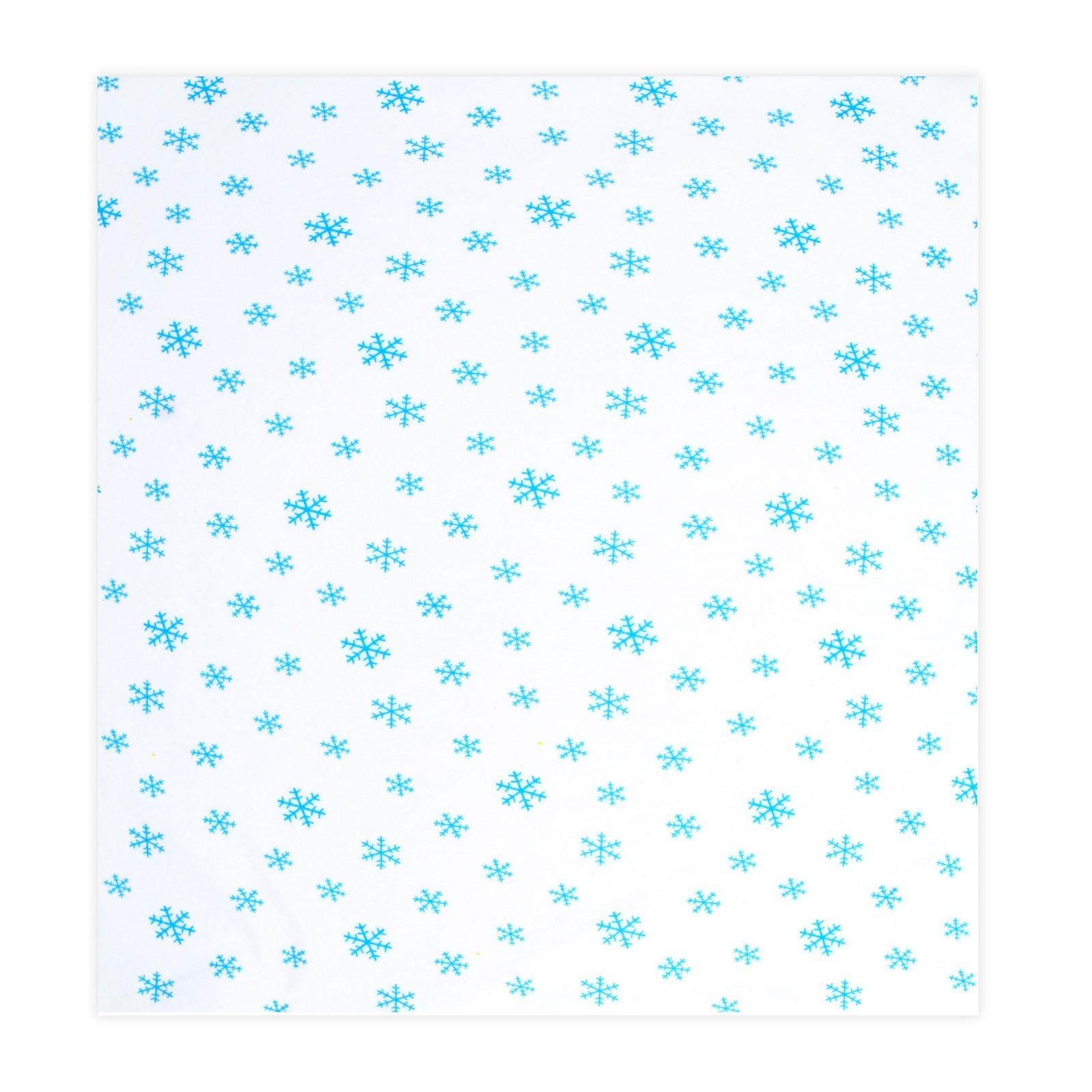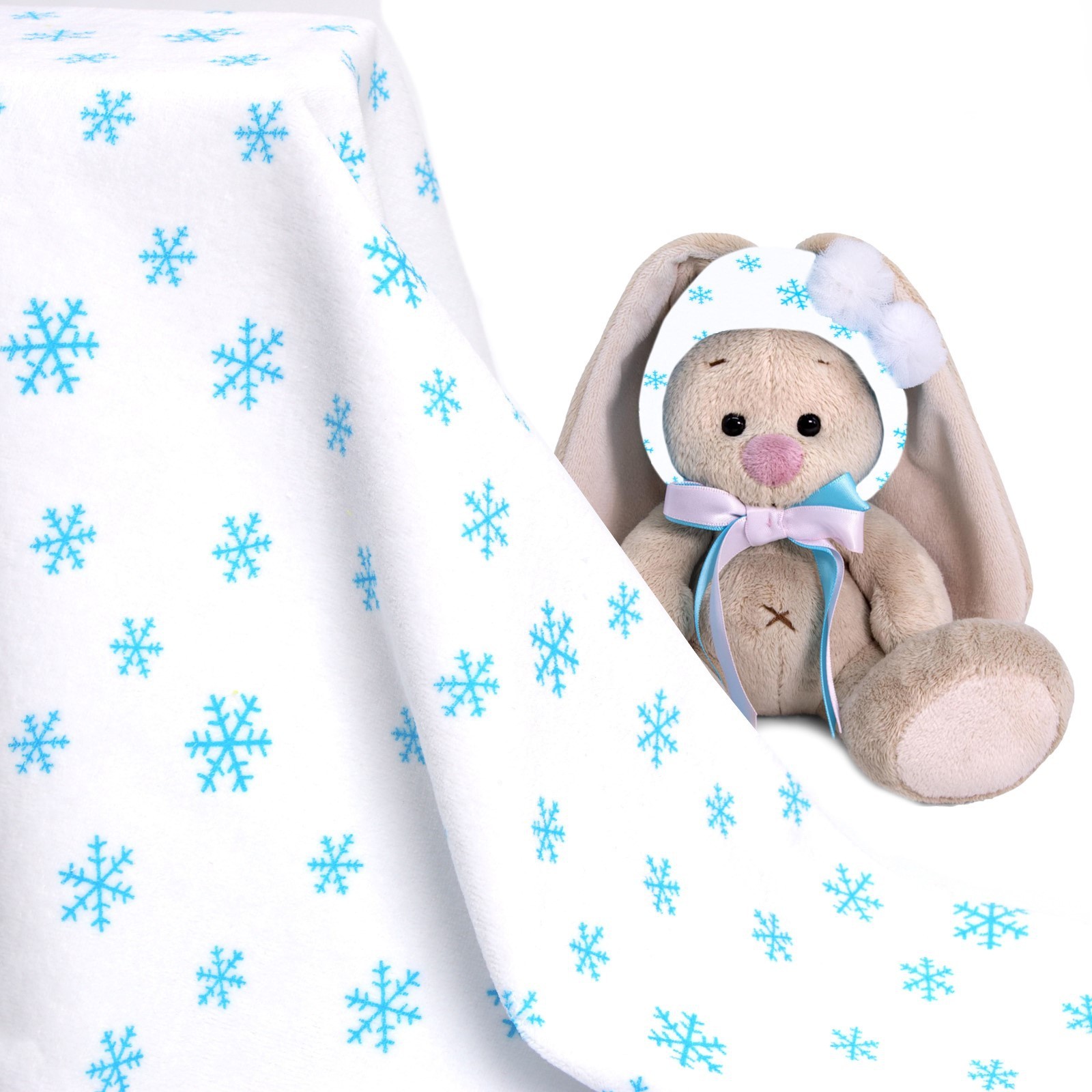 Ткань для рукоделия, велюр на трикотажной основе, на белом фоне голубые снежинки, лоскут 45 х 50 см