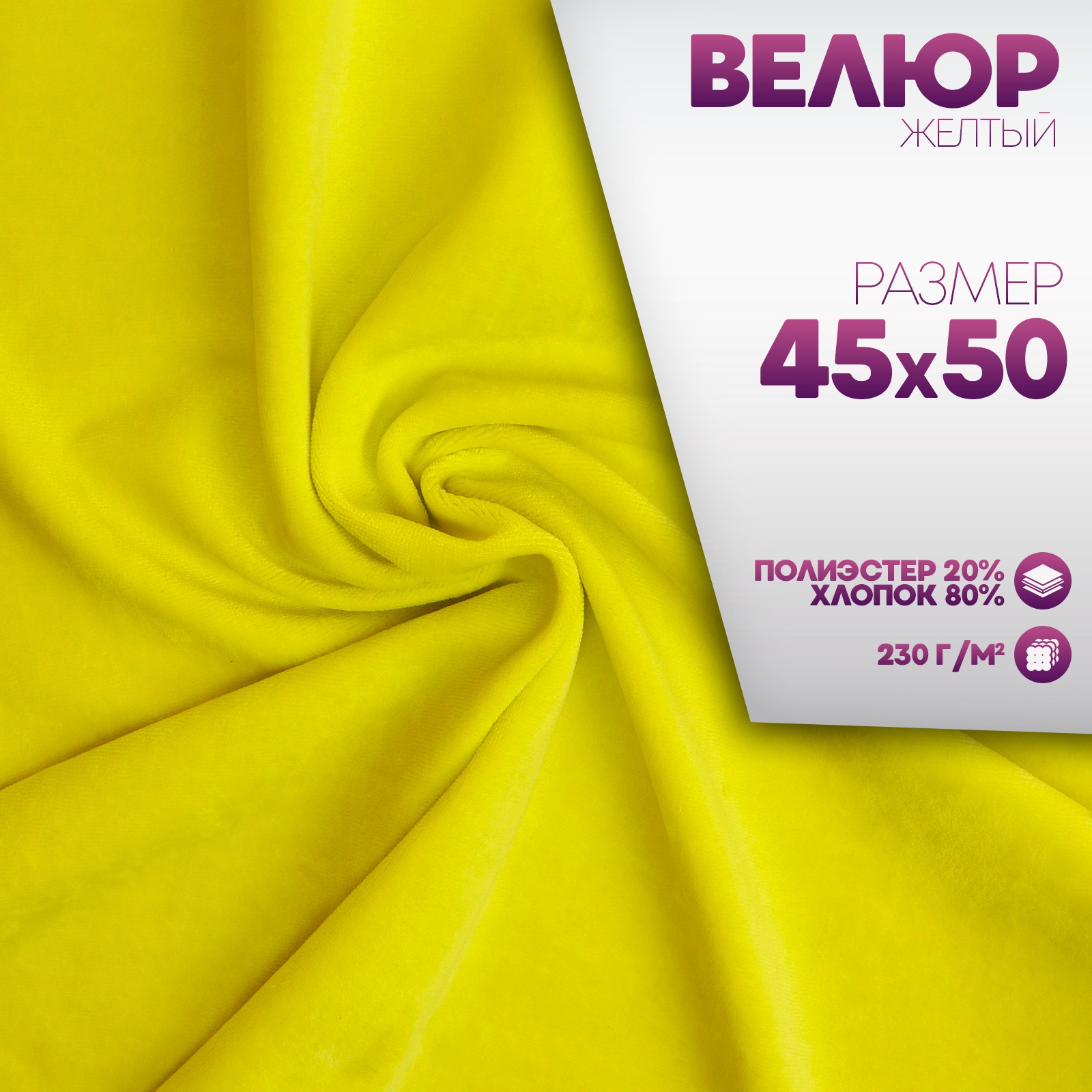 Ткань для рукоделия, велюр на трикотажной основе, цвет жёлтый, лоскут 45 х 50 см