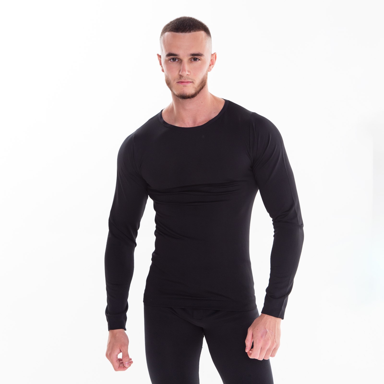 Термобельё мужское начёс (лонгслив, кальсоны), цвет чёрный, размер 50-52