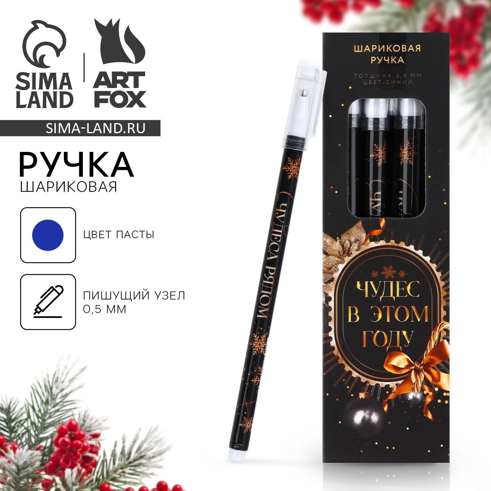 Ручка шариковая, синяя паста, 0.5 мм, пластик, с колпачком «чудес в этом году»