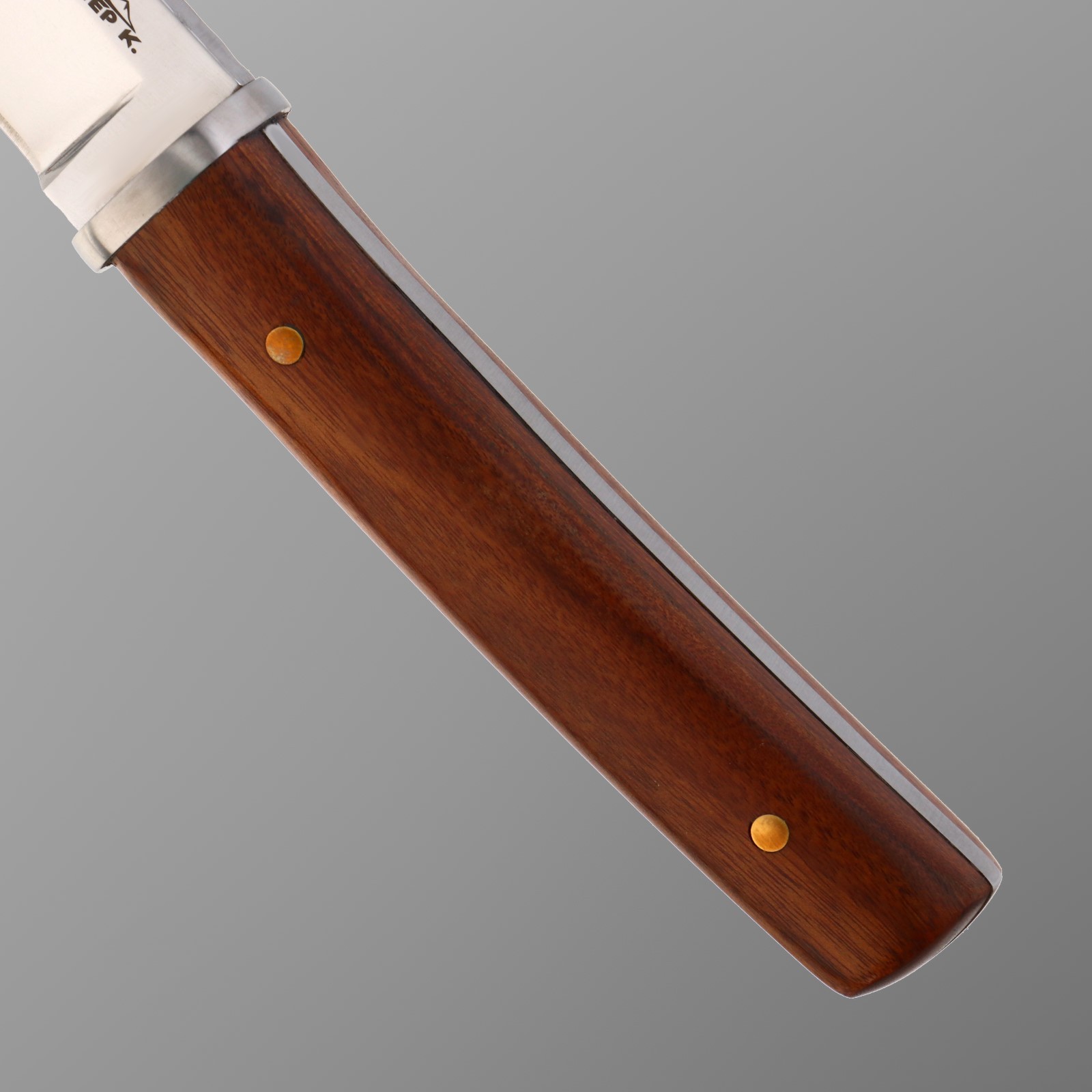 Нож-танто "браун" 23,4см в оплетке в дереве, клинок 122мм/4,6мм. Длина лезвия, см: 9.8 Твёрдость лезвия, HRC: 52 Материал ручки: Дерево Сталь: 420 Общая длина ножа, см: 20 Метательный нож: Нет  развернуть описание ▼