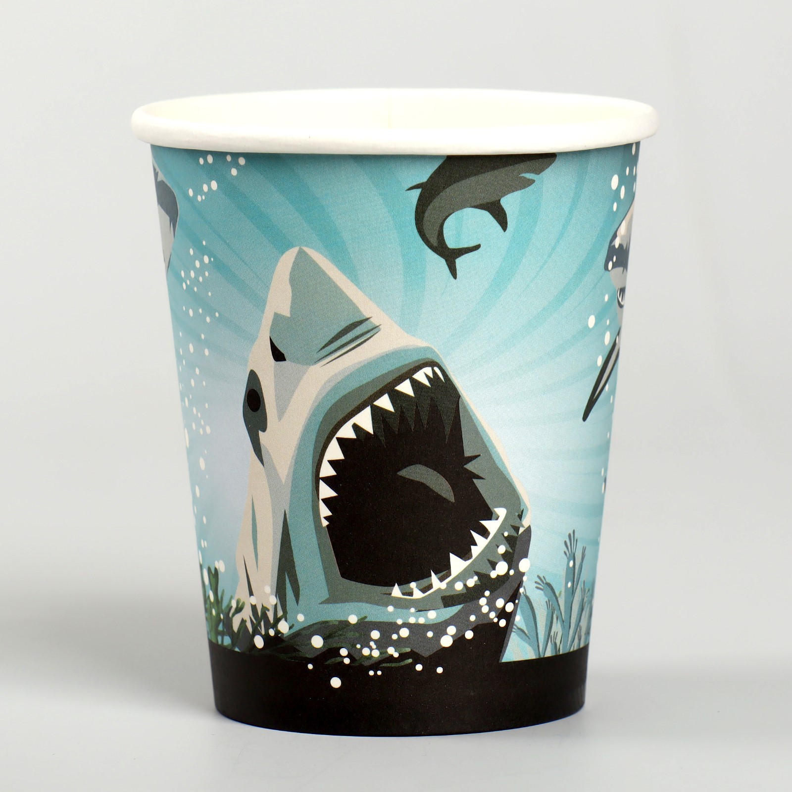 Стакан бумажный «акула», в наборе 10 штук. Посуда изготовлена из высококачественной бумаги без добавления поликарбоната, меламина и поливинилхлорида. Такие изделия безопасны, они не «раскисают» при взаимодействиями с продуктами питания. Преимущества бумажной посудыЭкологически безвредна: полностью разлагается в естественной среде. Гигиеничность и безопасность: при изготовлении используется первичный и вторичный картон с ламинацией, крафт-бумага и пищевые красители. Выдерживает высокую и низкую температуру. Сохраняет вкус еды и напитков, не выделяя вредных веществ, при нагреве. Тарелки и стаканы из бумаги приятнее на ощупь, чем аналогичная посуда из пластика. Такую посуду не надо мыть и невозможно разбить. Где применяется бумажная посуда:детские заведения и мероприятия, организация питание на свежем воздухе, точки продажи фастфуда, летние кафе и бистро, вендинг и офисы, доставка обедов. Цвет: Бирюзовый Диаметр, см: 7.5 Количество слоёв: 1 В наборе, шт.: 10 Объём, мл: 250 Материал: Бумага Вид: Стакан  развернуть описание ▼