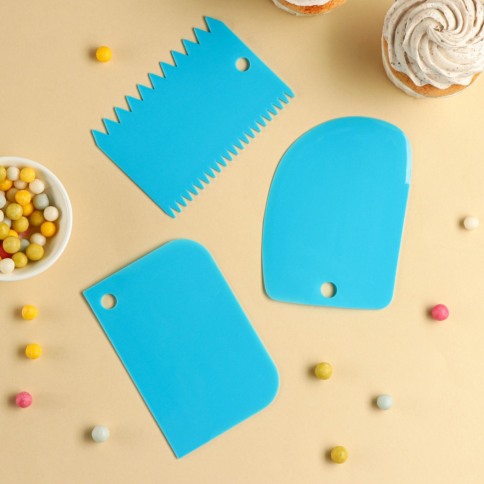 Набор шпателей кондитерских, 3 предмета, 12x8 см, цвет голубой. Цвет: Голубой В наборе, шт.: 3 Материал: Пластик Вид: Кондитерские шпатели