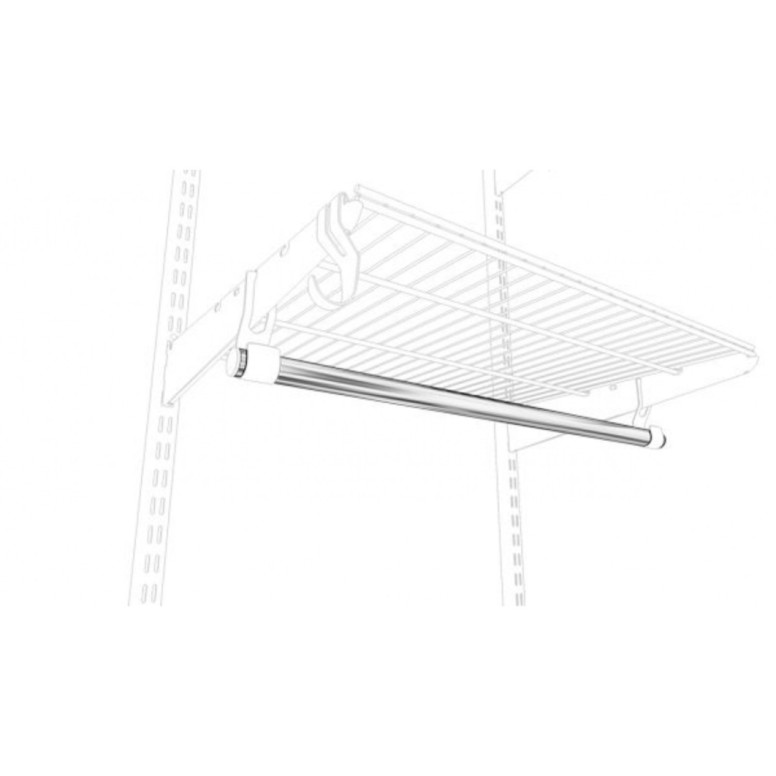 Перекладина для вешалок гардеробной системы, 200 см. Аксессуар гардеробной системы, подходит для хранения небольших предметов. Конструкция создает дополнительное функциональное пространство между стойкми GS. Панель с крючками крепится к стойкам GS с помощью зацепов. Крючок изготовлен из стали, обладает высоким запасом прочности. Полимерно-порошковое покрытие устойчиво к механическому воздействию и истиранию, защищает изделие от ржавчины.