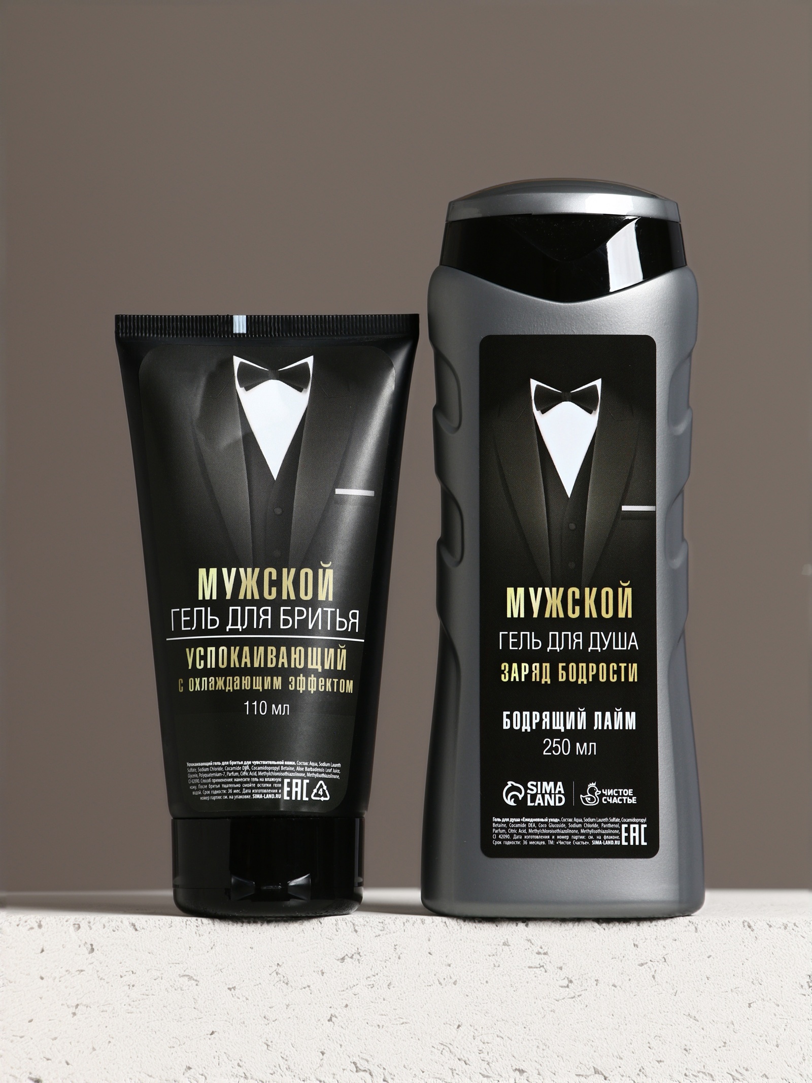 Подарочный набор «подарок джентльмену», бодрящий гель для душа 250 мл, гель для бритья 110 мл