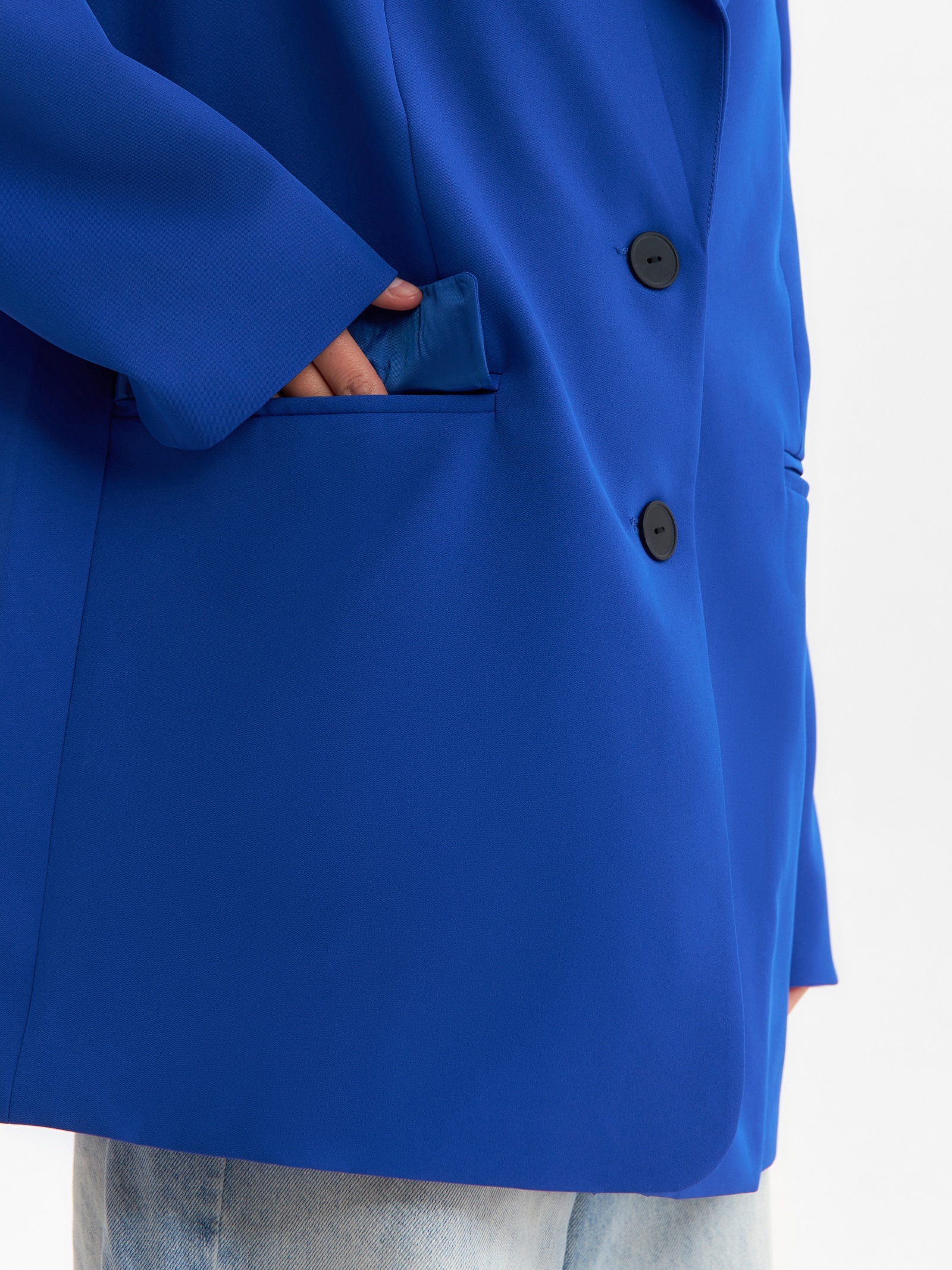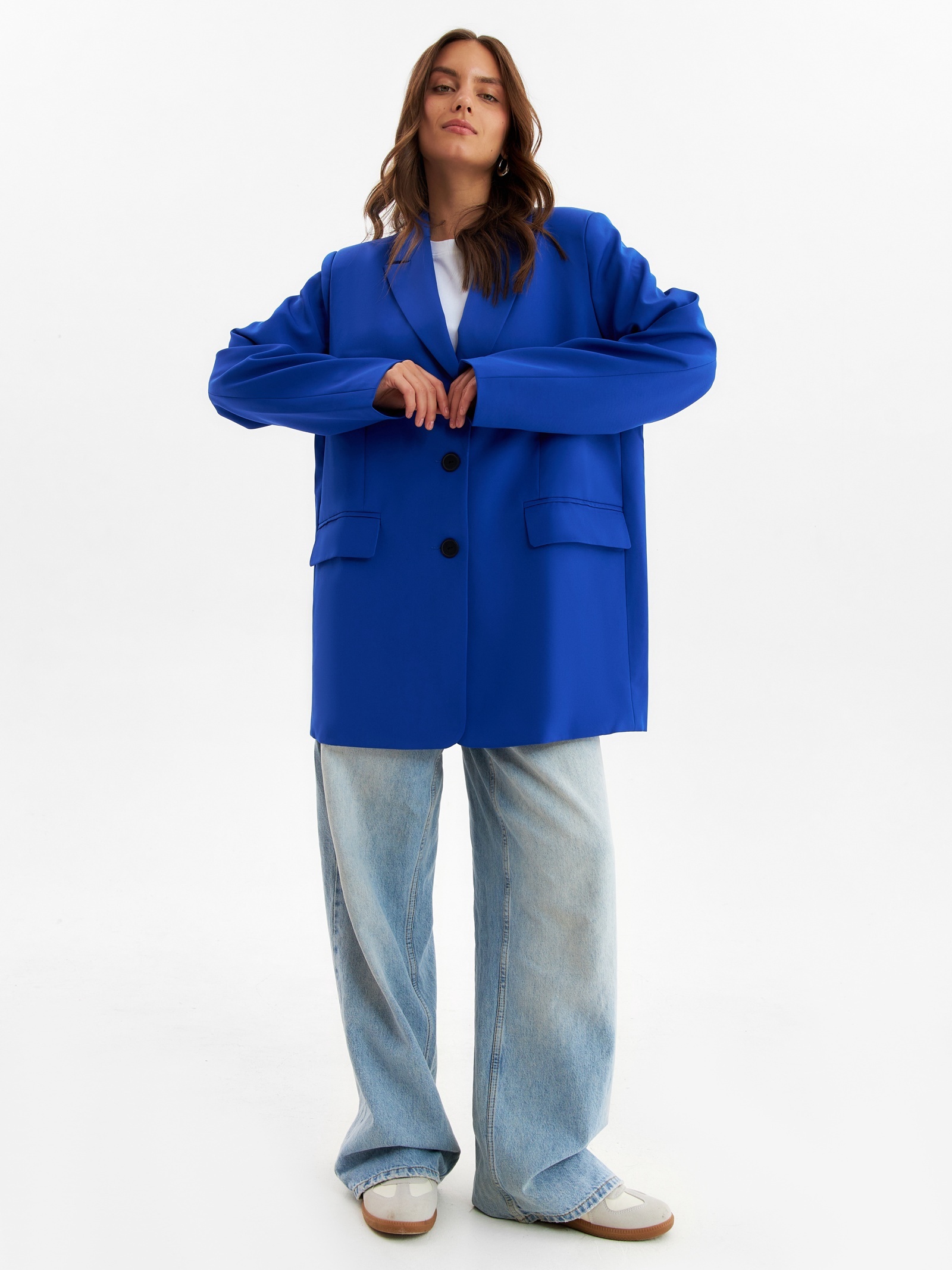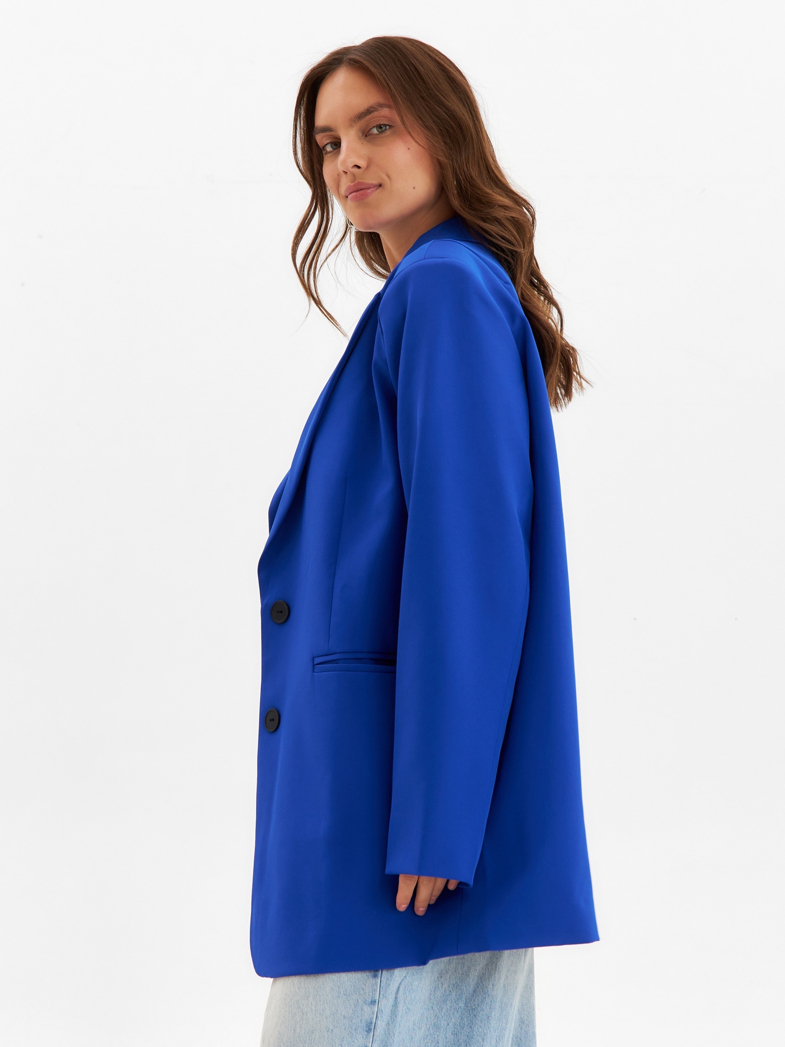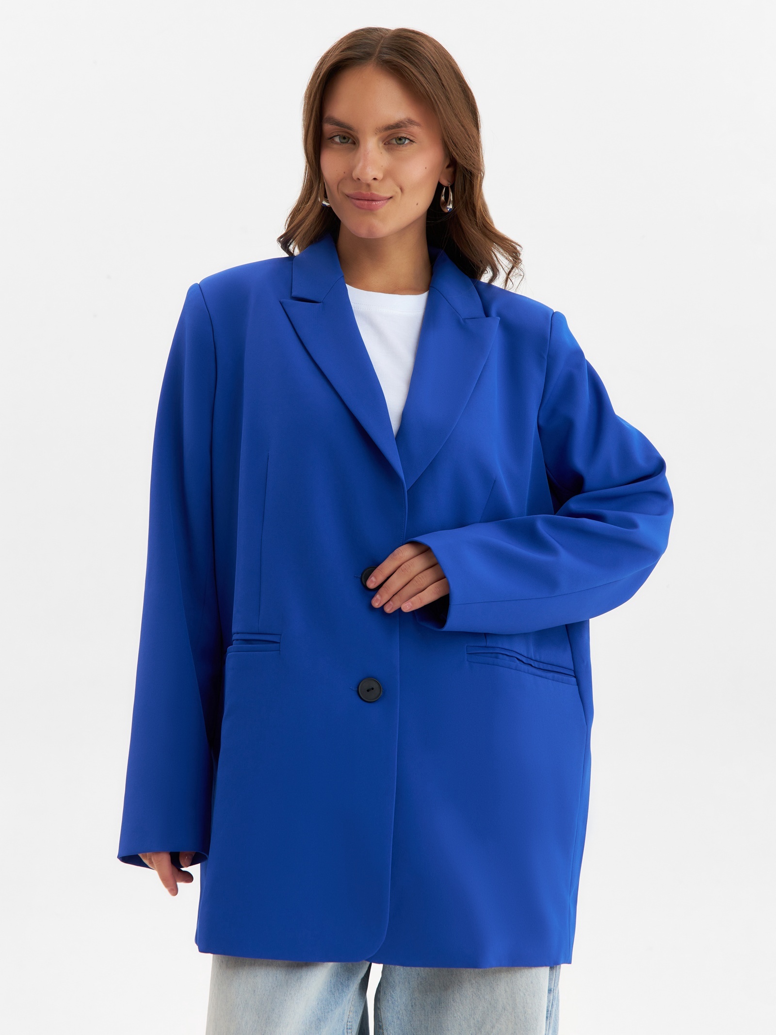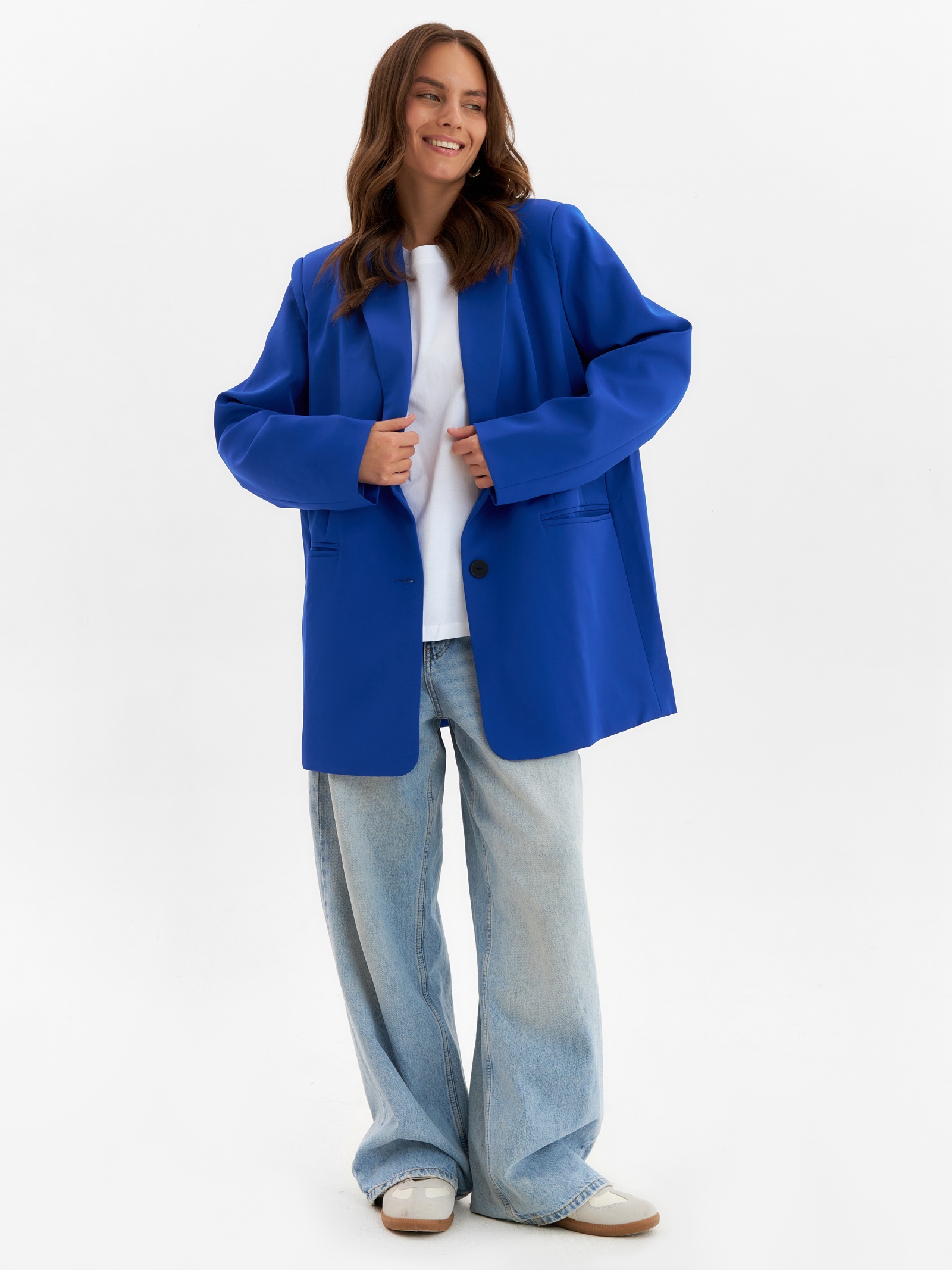 Пиджак женский one size mist, цвет синий. Цвет:Синий|Для кого:Для женщины|Назначение:Офис|Назначение:Повседневная|Ткань:Костюмная ткань|Размер:40|Размер:42|Размер:44|Размер:46|Размер:48|Размер:50|Размер:52|Рост, см:165 - 170|Длина рукава, см:64.5|Рост модели на фото, см:170|Сезон:Всесезонный|Вид застёжки:Пуговицы(-а)|Тематика:Однотонная|Длина рукава:Длинный|Вырез горловины:V-образный|Декоративные элементы:Без элементов|Покрой:Свободный|Тип рукава:Втачной|Рекомендации по уходу:Не отбеливать|Рекомендации по уходу:Стирка при 30 °С|Рекомендации по уходу:Бережный режим глажки|Состав ткани:Полиэстер|Длина изделия по спинке, см:78|Обхват груди, см:108|Параметры модели на фото (ОГ-ОТ-ОБ):78-60-88|Размер одежды:One size|Страна:Россия  развернуть описание ▼
