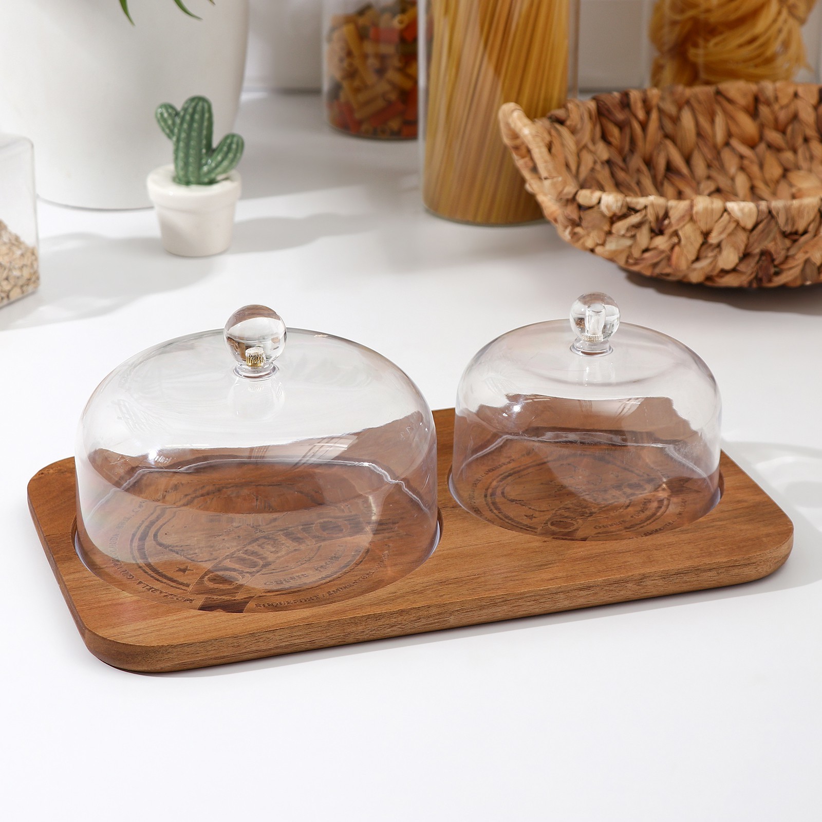 Блюдо для подачи с двумя крышками, 34x20x12 см, акация