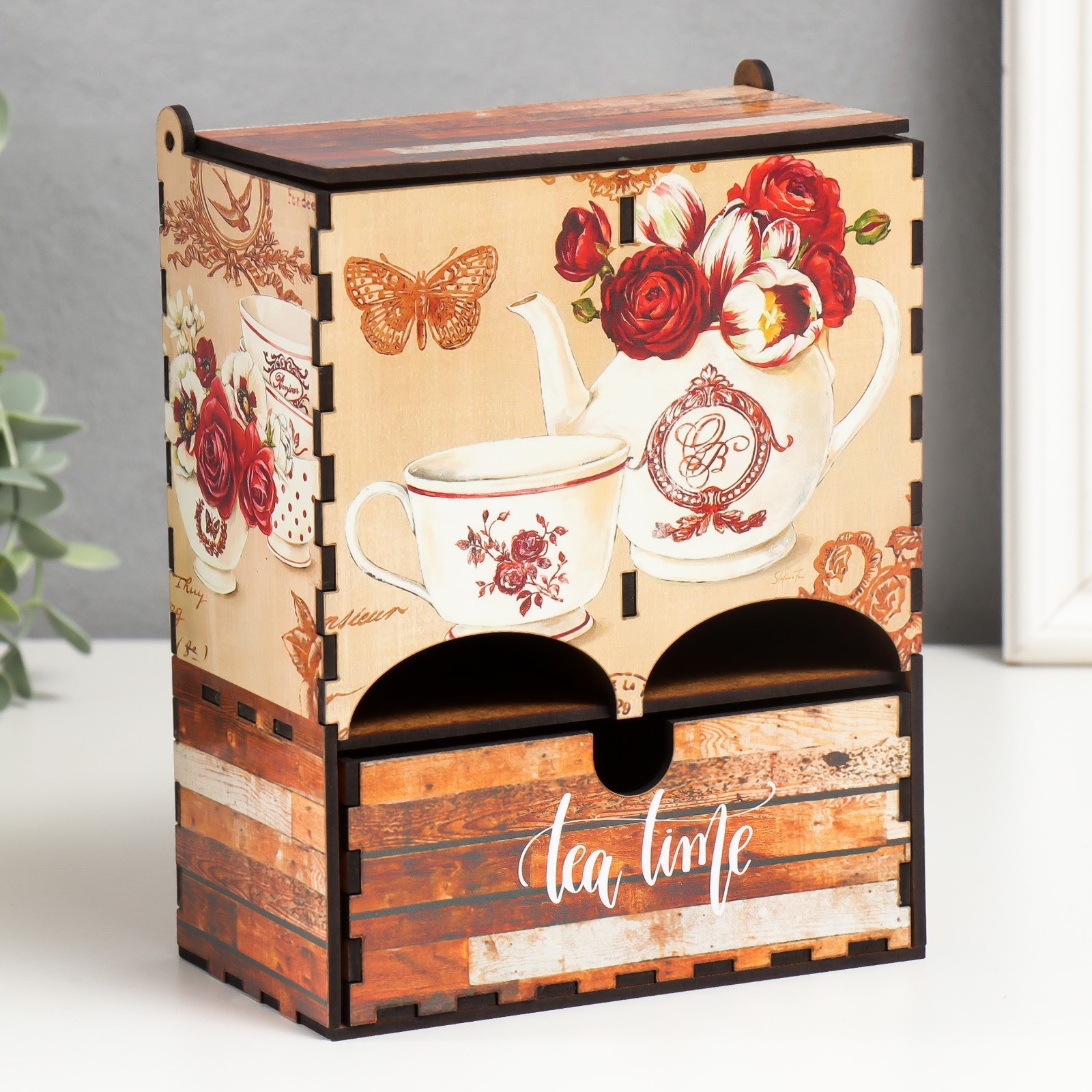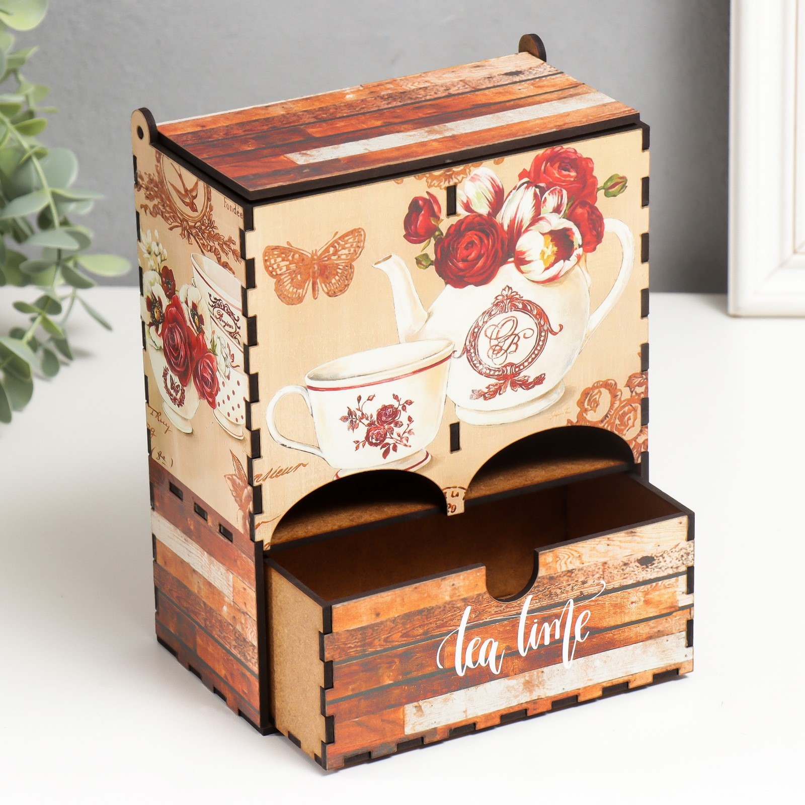 Чайный домик двойной с ящиком "цветы" 20х8,7х15,2 см
