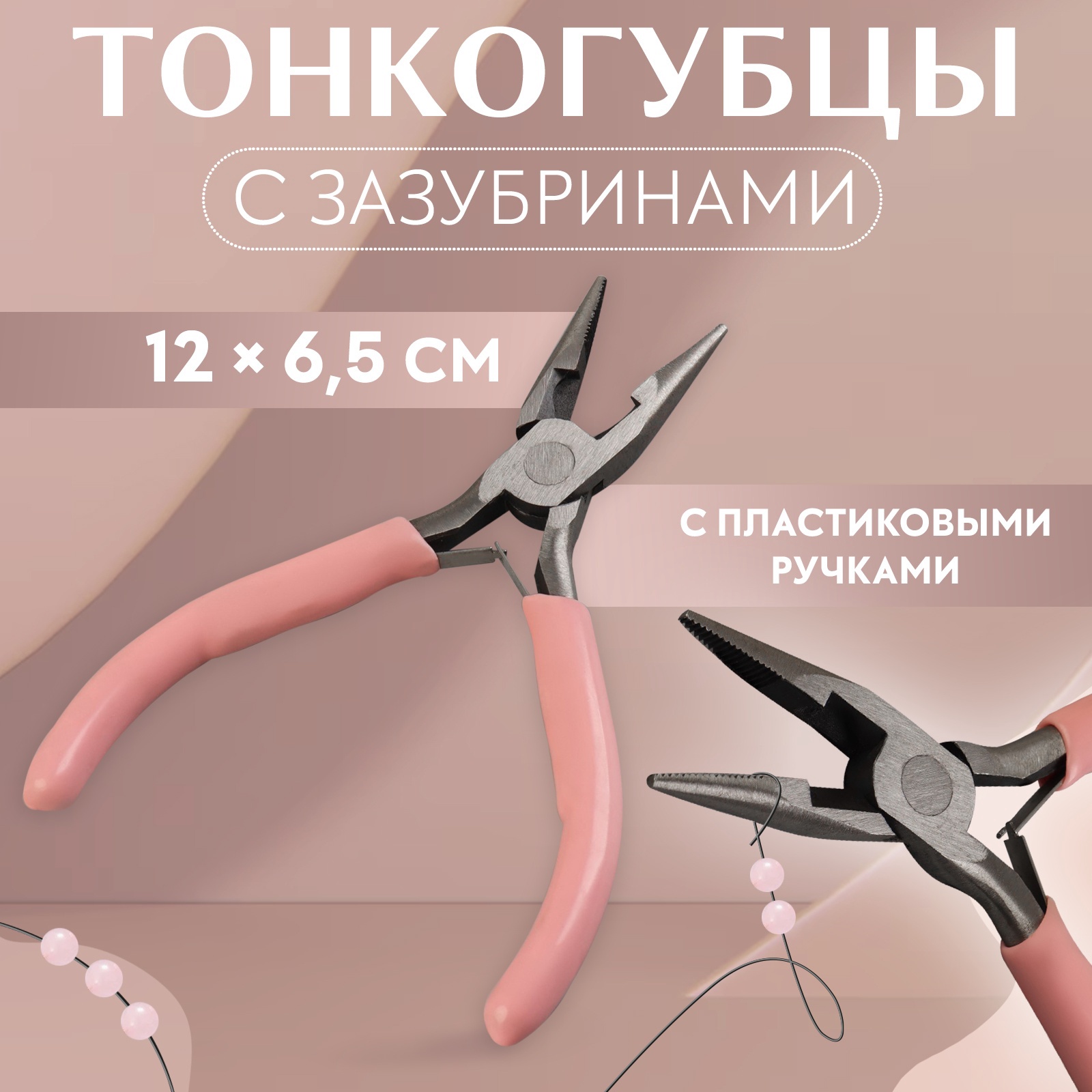 Тонкогубцы с зазубринами, для рукоделия, 12 6.5 см, розовые