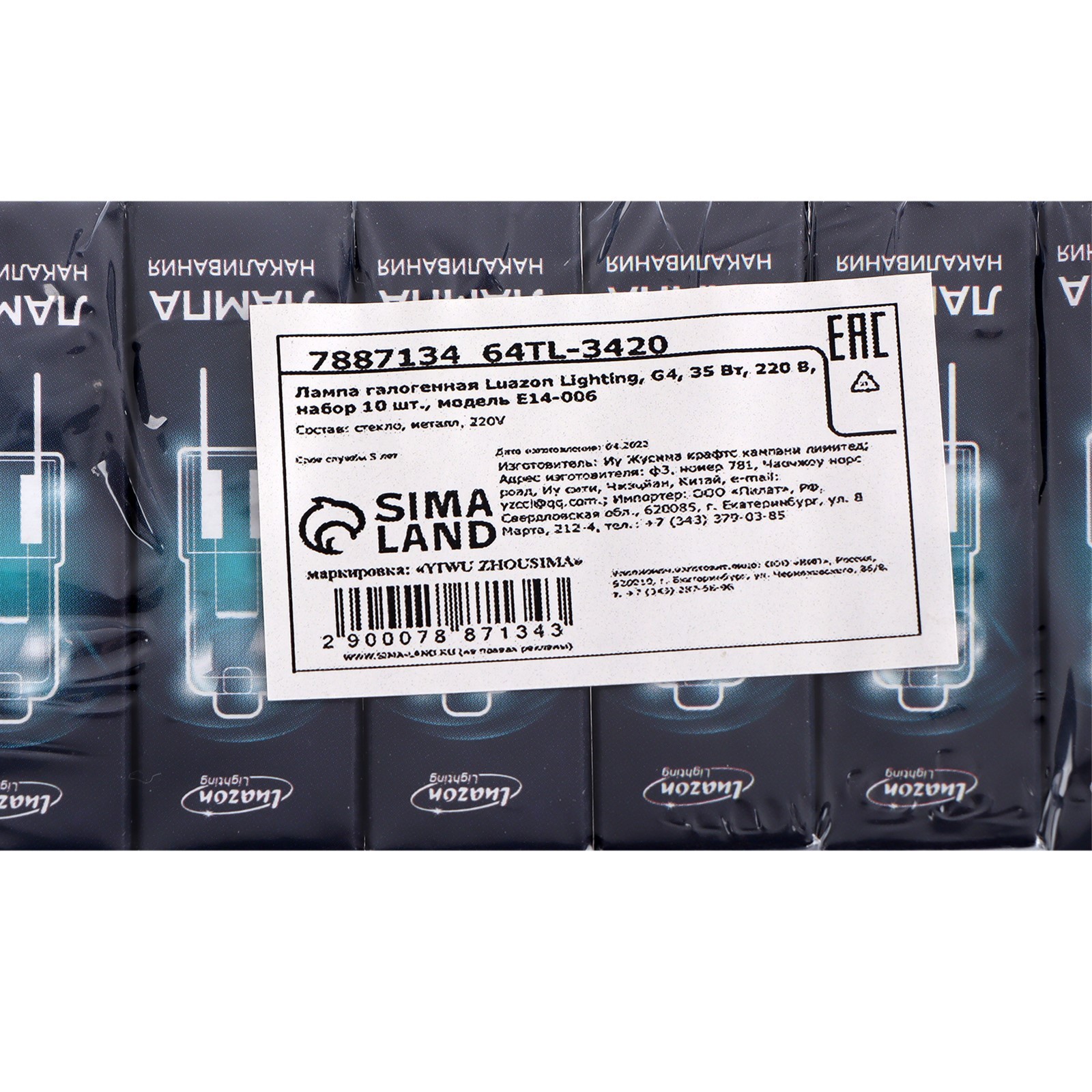 Лампа галогенная Luazon Lighting, G4, 35 вт, 220 в, набор 10 шт.
