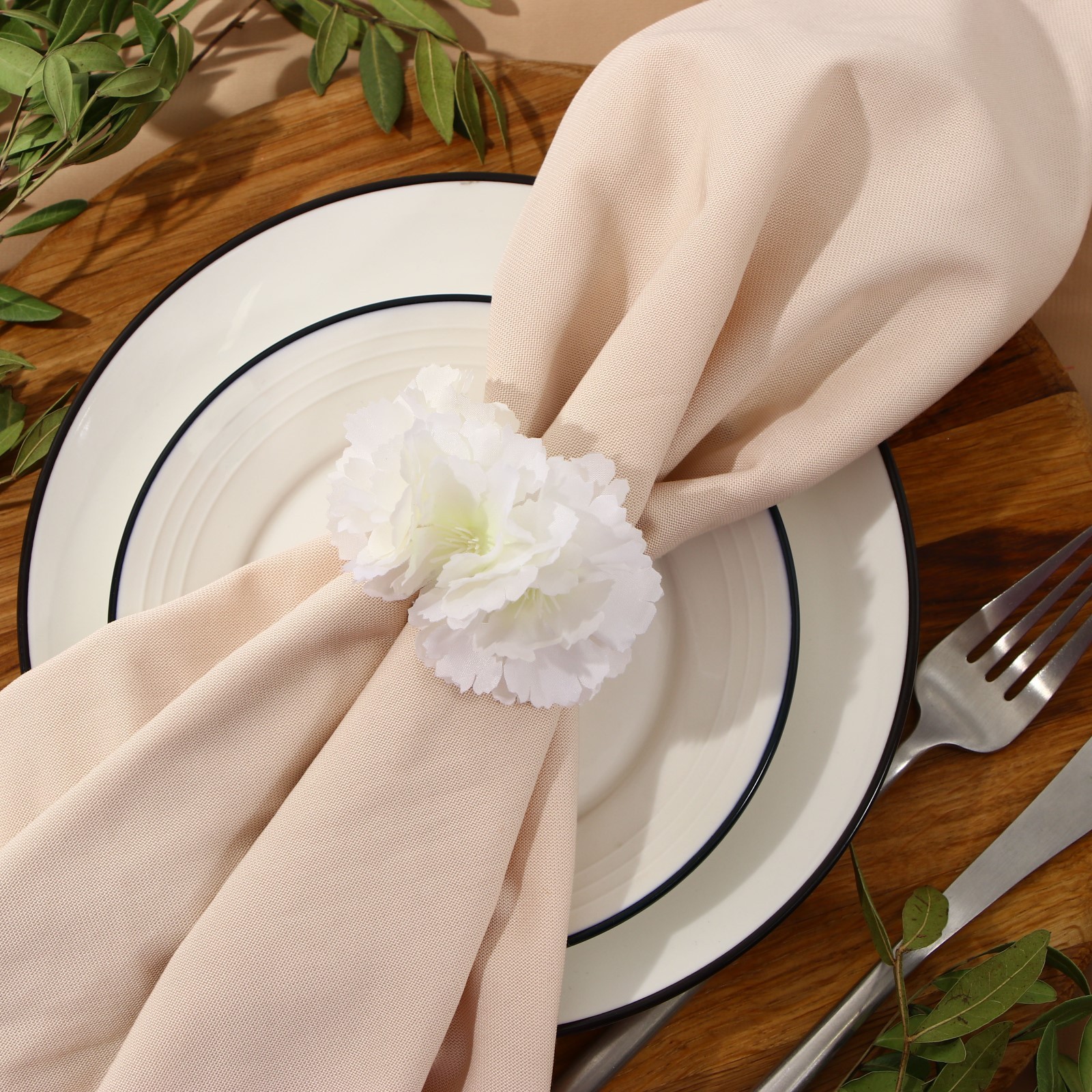 Кольцо для салфеток «белая сакура». Кольца для салфеток станут хорошим аксессуаром для сервировки стола. Они придадут любому оформлению стола особый шарм и изысканность. Цвет: Белый Диаметр, см: 10 parts count: 0 Материал: Текстиль Материал: Пластик Температурное ограничение: Нет  развернуть описание ▼
