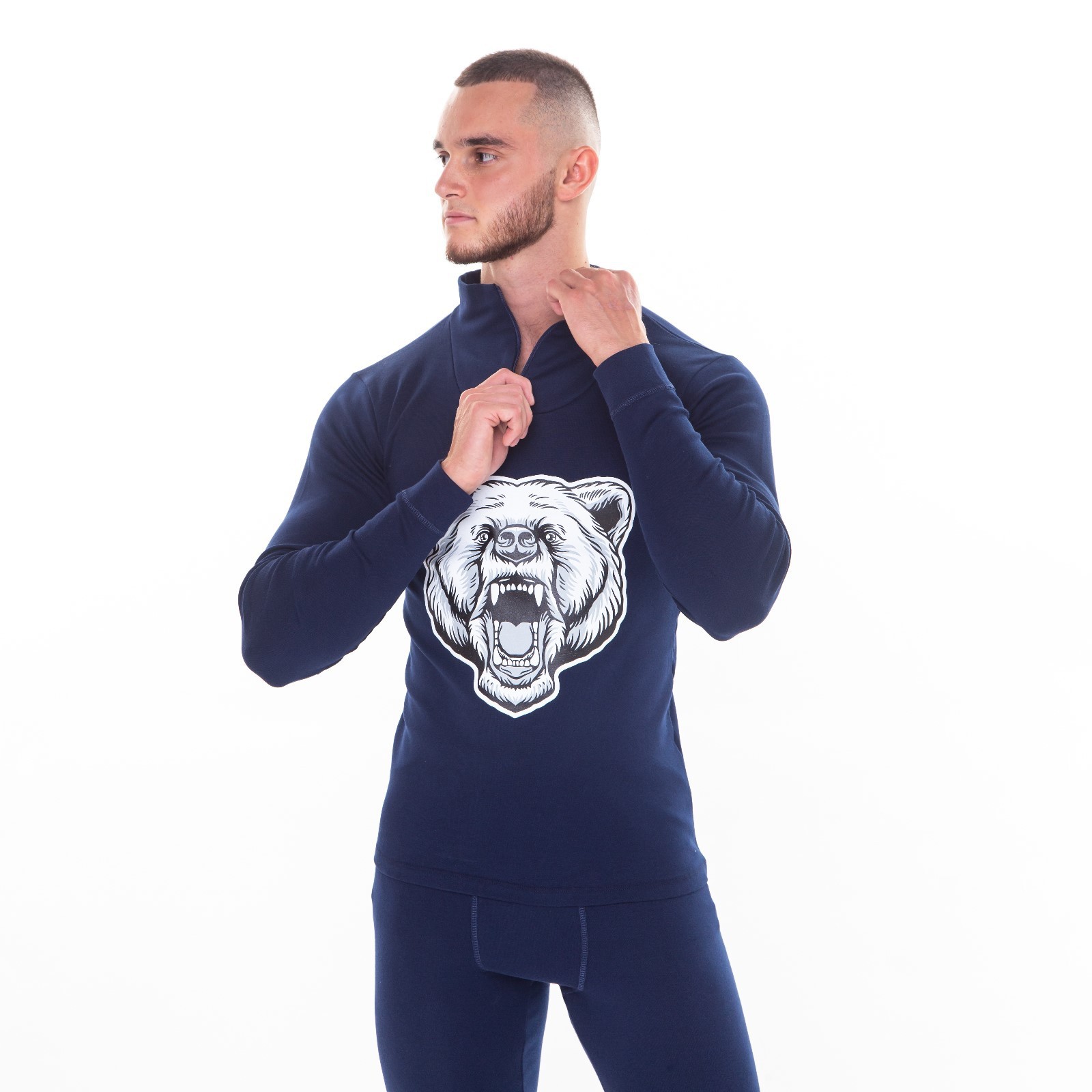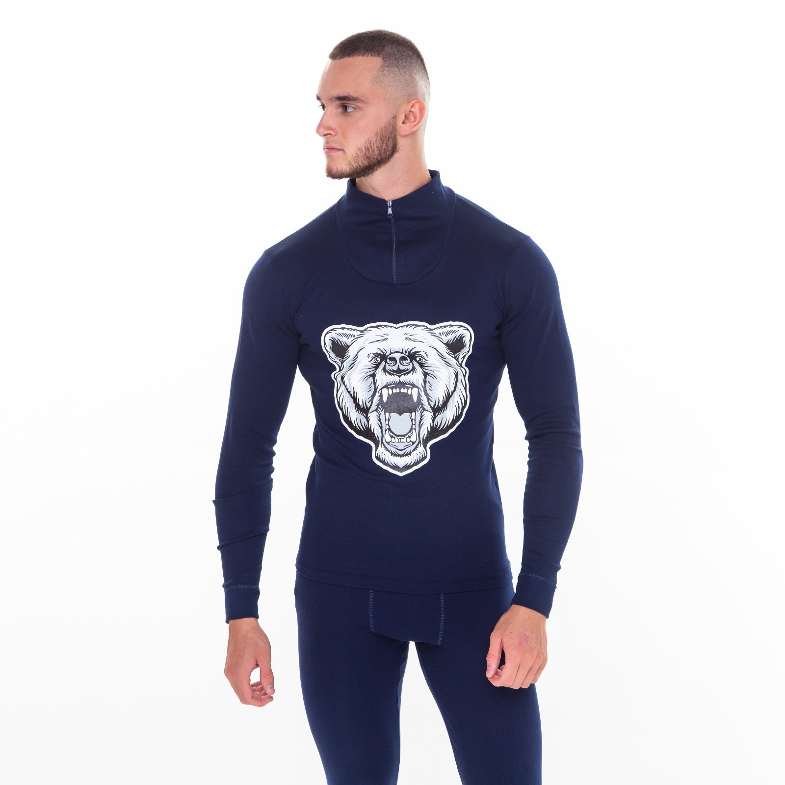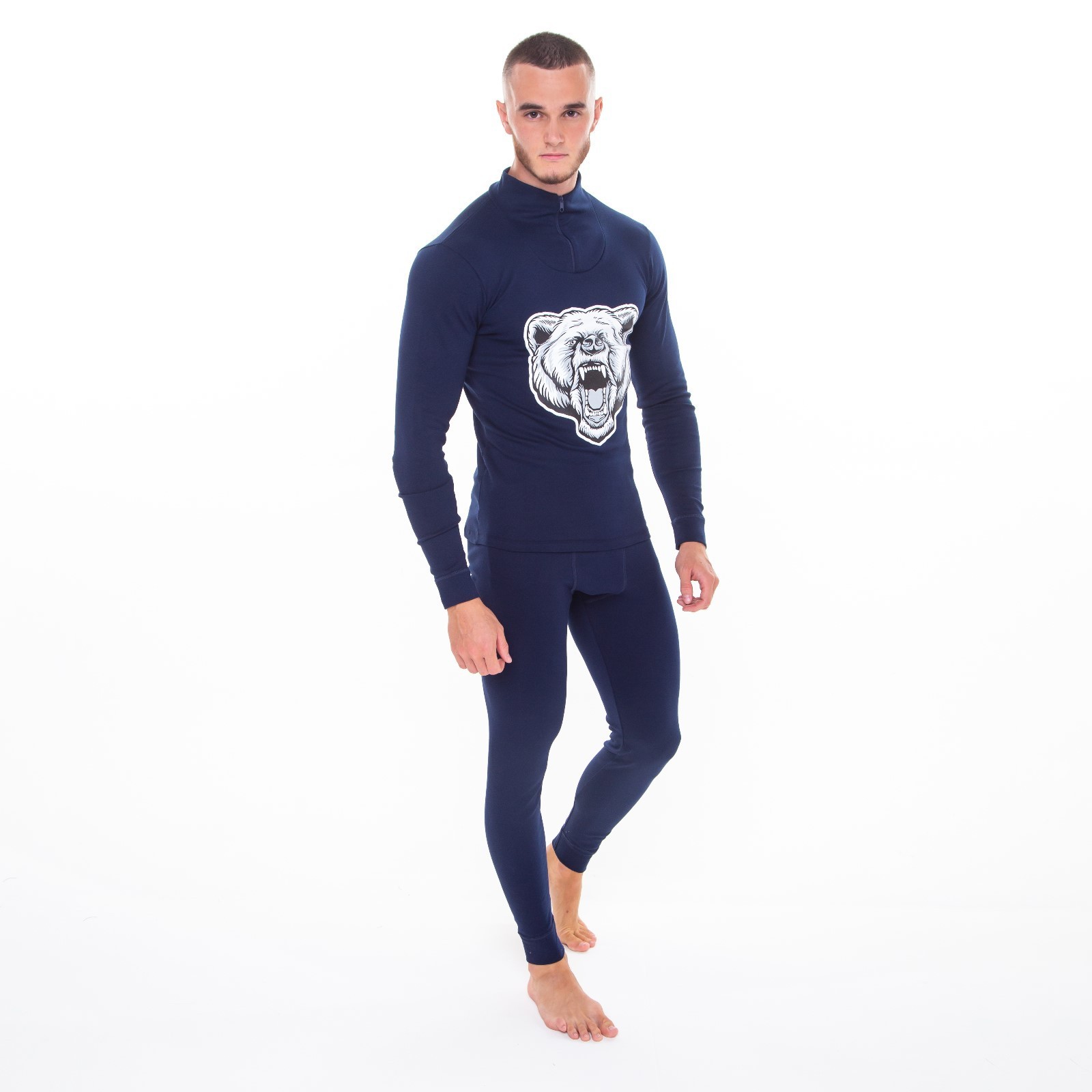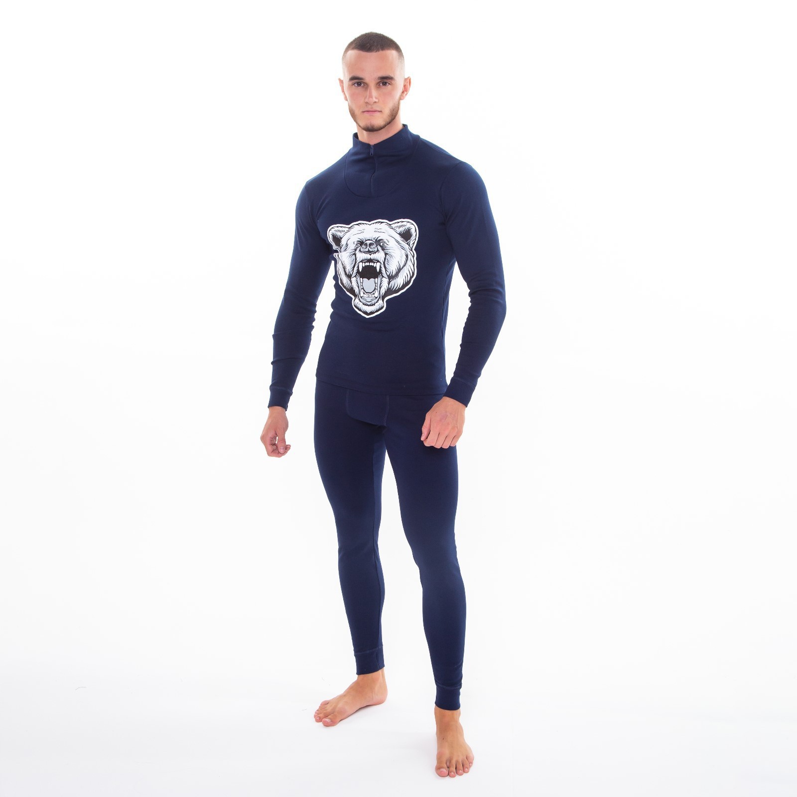 Термобельё мужское начёс (фуфайка, кальсоны) принт медведь, цвет тёмно-синий, размер 50