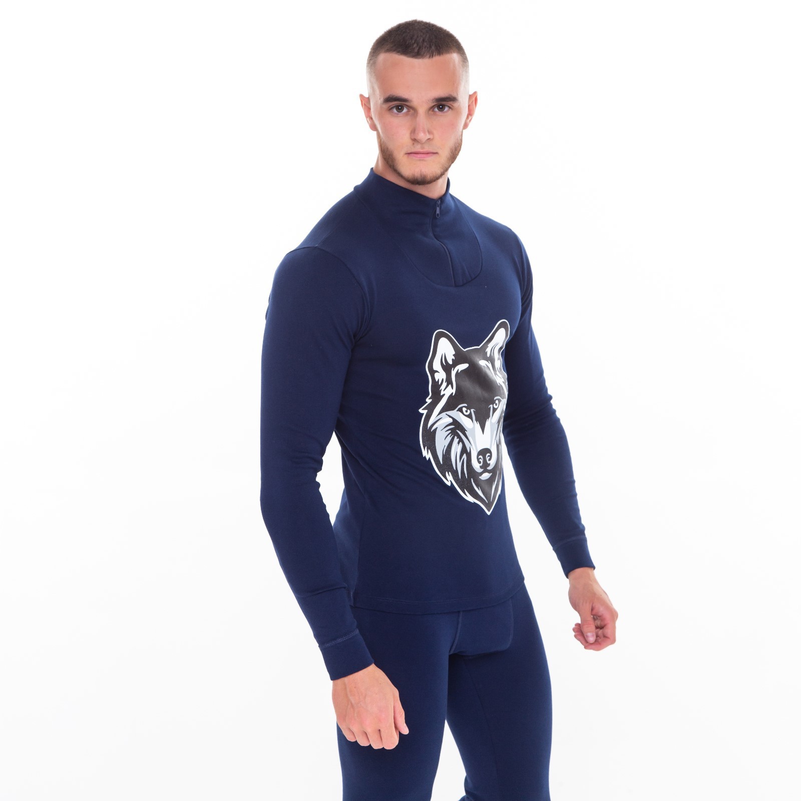 Термобельё мужское начёс (фуфайка, кальсоны) принт волк, цвет тёмно-синий, размер 54