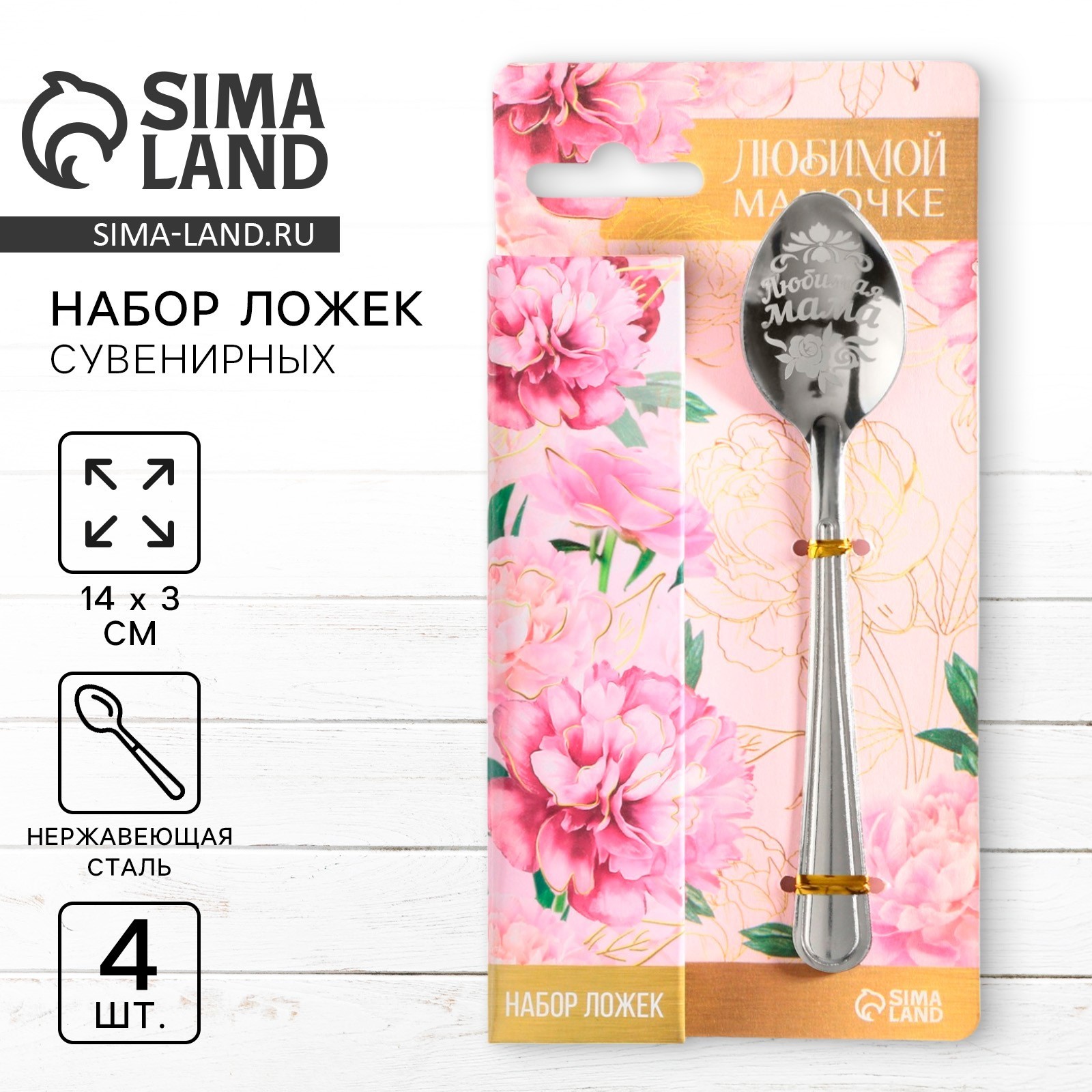 Подарочный набор чайных ложек "любимой мамочке", 4 шт