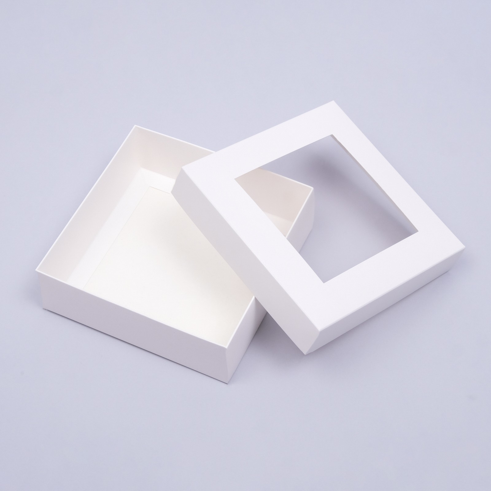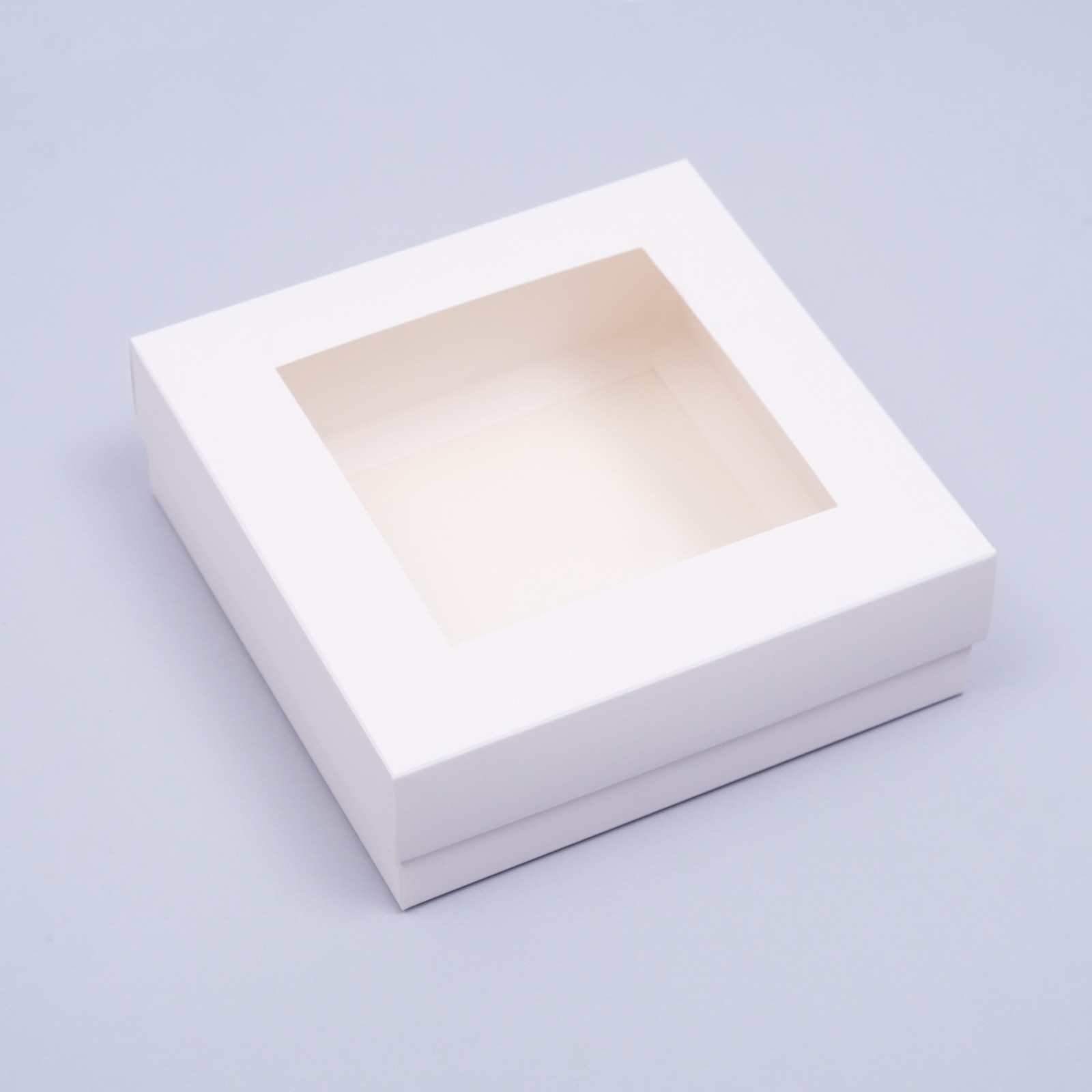 Коробка складная, крышка-дно,с окном, белая, 15 х 15 х 5 см