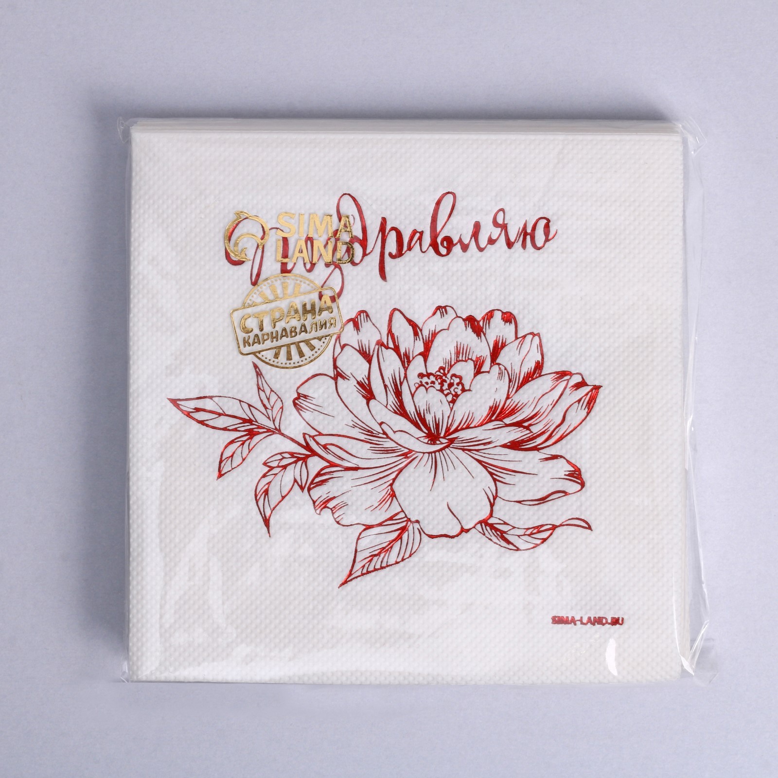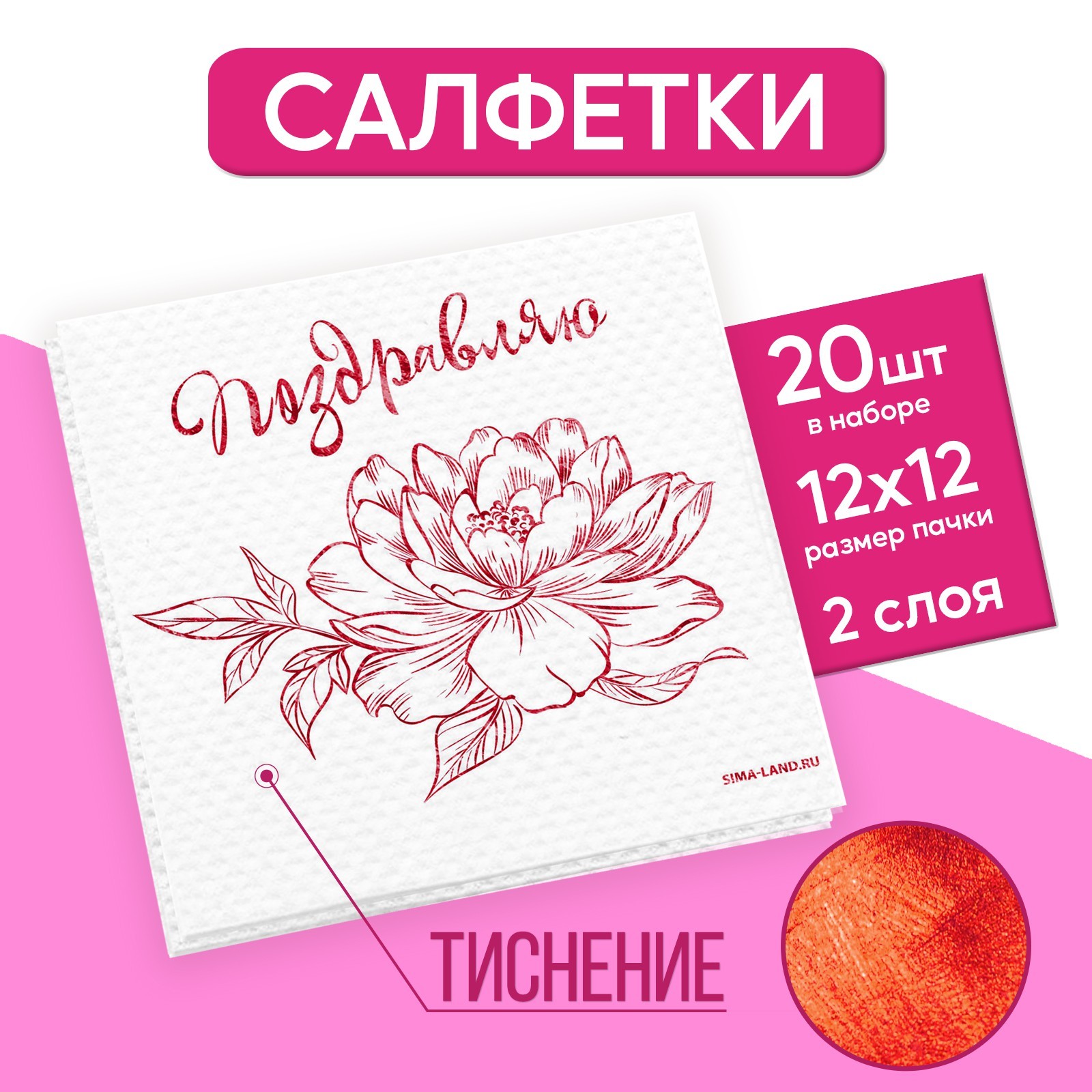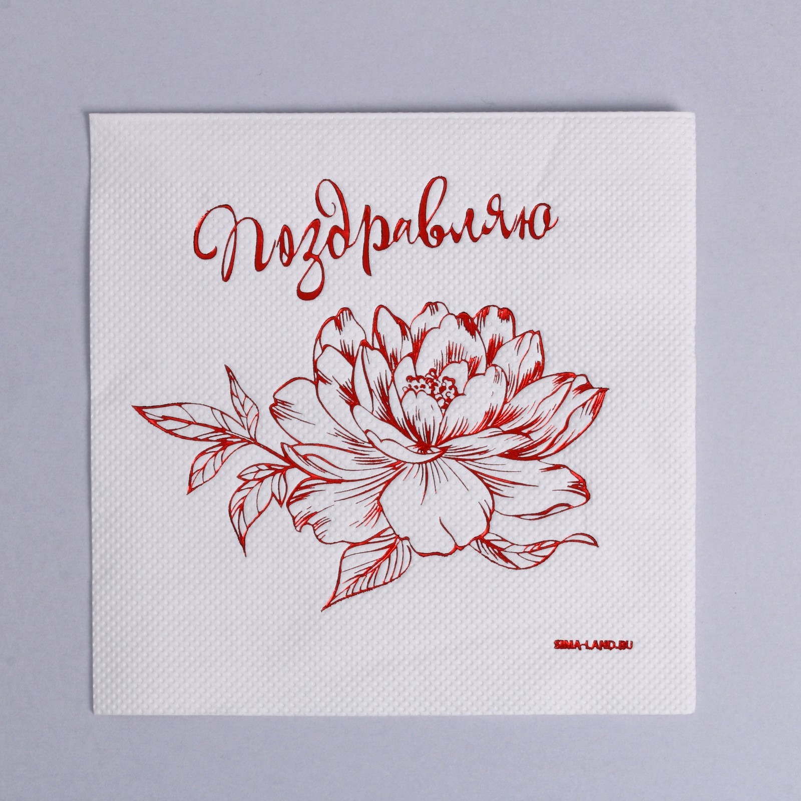 Салфетки бумажные «поздравляю», 20 шт, красное тиснение, 25 х 25см
