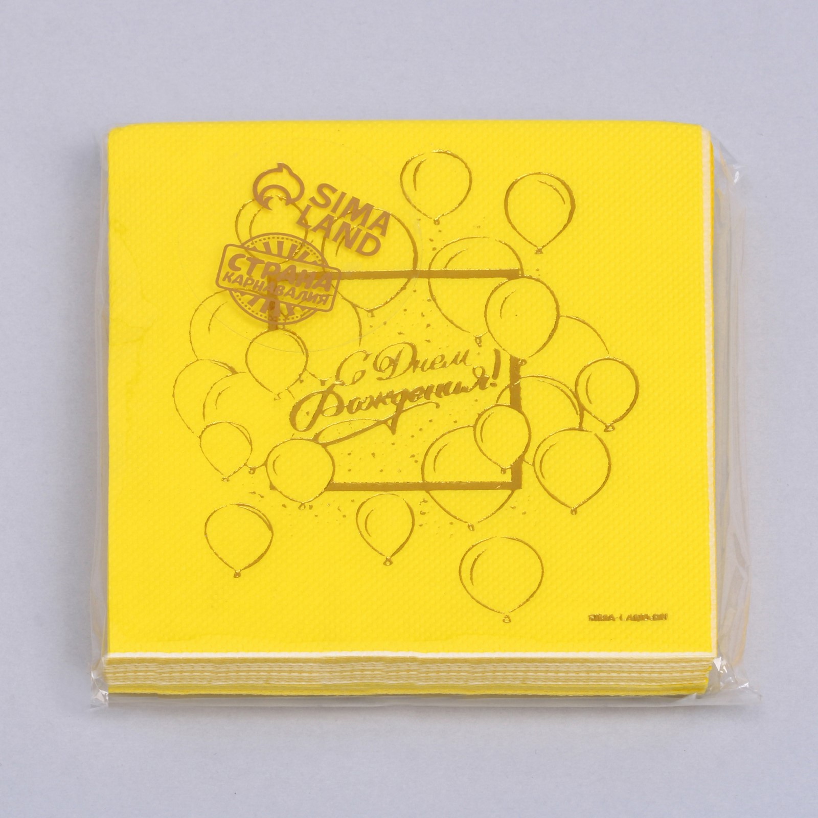 Салфетки бумажные «с днём рождения», шарики 20 шт, золотое тиснение, 25 х 25см