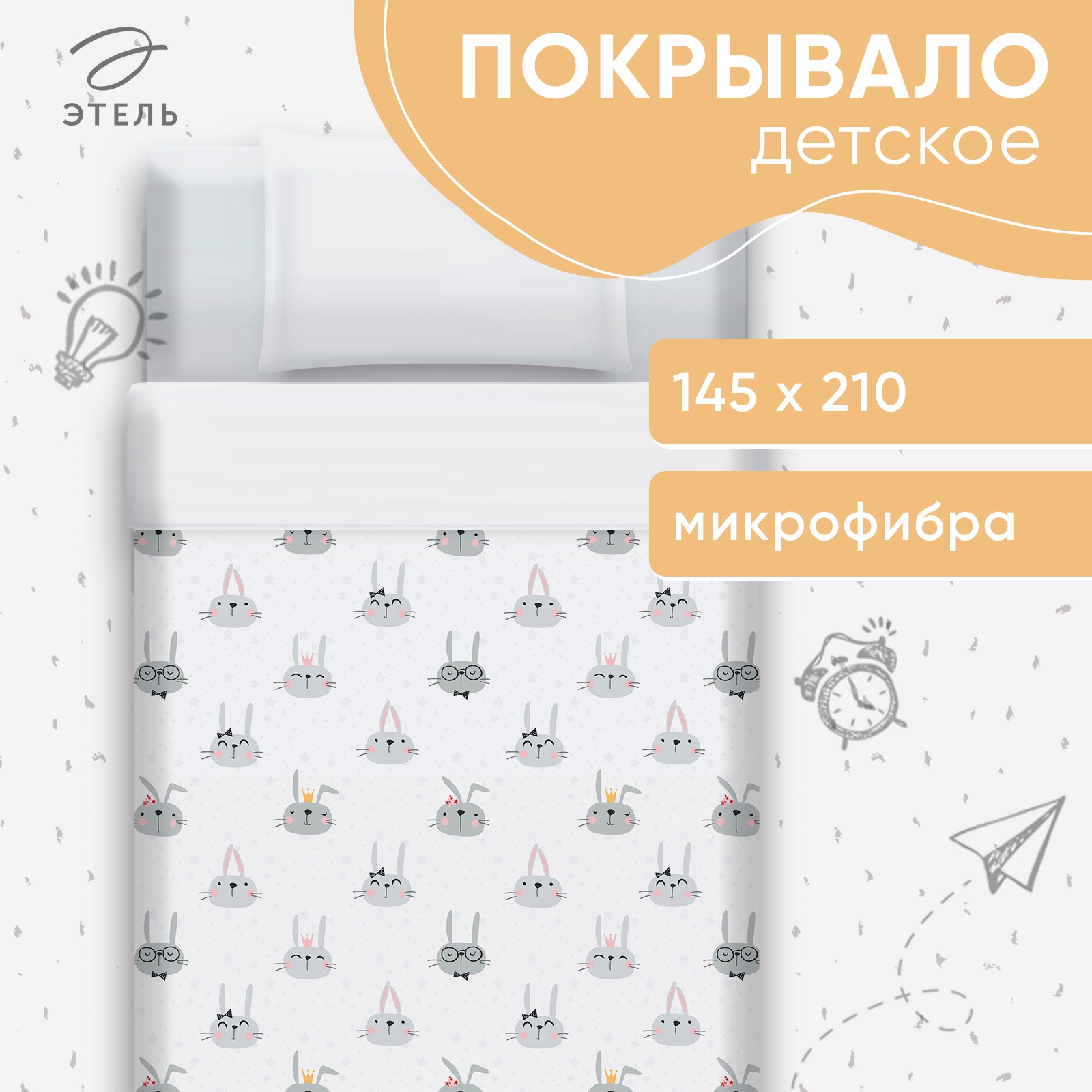 Покрывало 1.5-спальное «этель» funny rabbits, 145 210 см, хлопок 100%. Цвет:Белый|Цвет:Серый|Для кого:Унисекс|Ткань:Рогожка|Плотность, г/м :220|Размер, см:145 х 210|Длина, см:210|Ширина, см:145|Размер:1.5-спальное|Тематика:Животный мир|Вид упаковки:PVC-пакет|Символ года:Нет|Тематика праздника:Новый год|Декоративные элементы:Без элементов|Рекомендации по уходу:Глажка при 150 °С|Рекомендации по уходу:Стирка при 40 °С|Рекомендации по уходу:Барабанная сушка при низкой температуре|Рекомендации по уходу:Не отбеливать|Состав ткани:Хлопок|Страна:Россия  развернуть описание ▼