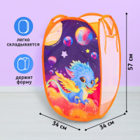 Корзина для игрушек «дракон». Данная корзина предназначена для хранения игрушек и других важных вещей малыша. Она поможет поддерживать чистоту в доме и приучить ребёнка к порядку. Отсутствие острых углов, прочные и лёгкие материалы делают предмет незаменимым в детской комнате. Такая корзина пригодится в поездках: в ней будет удобно собрать любимые игрушки, с которыми чадо не может расстаться ни на минуту. Она компактна, но вместит всё необходимое, и вещи не рассыплются в дороге. Если изделие стало ненужно, его можно сложить, так оно займёт совсем немного места. Цвет: Оранжевый Форма: Прямоугольная Ширина, см: 34 Глубина, см: 34 Высота, см: 57 Тематика: Космос Тематика: Животный мир Крышка: Нет Материал: Полиэстер Животное восточного календаря: Дракон Основной материал: Текстиль Форма: Прямоугольник  развернуть описание ▼