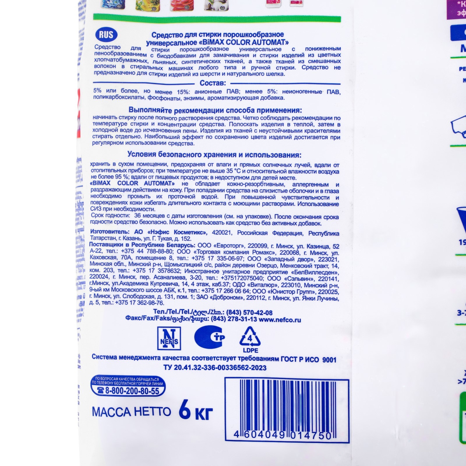 Стиральный порошок Bimax Color, автомат, 6 кг