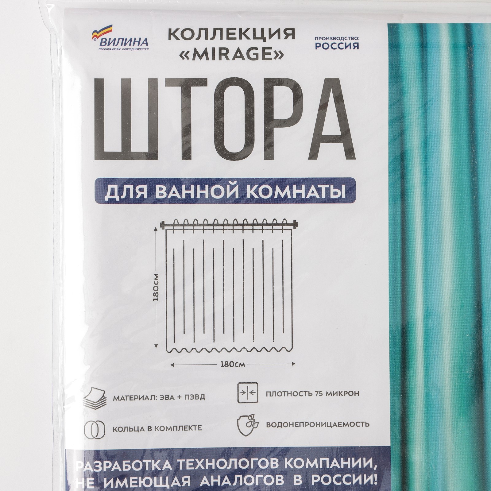Штора для ванной Mirage,180x180 см, цвет белый