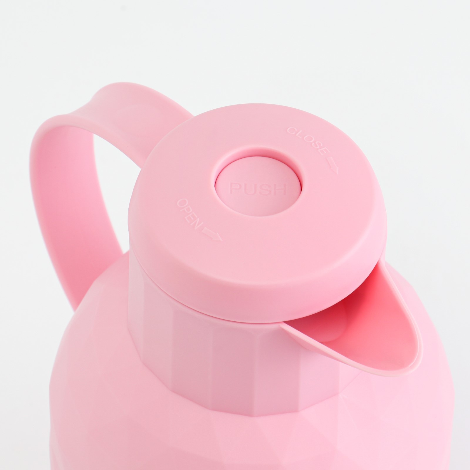 Термос-кофейник 1 л, сохраняет тепло 24 ч, стеклянная колба, розовый