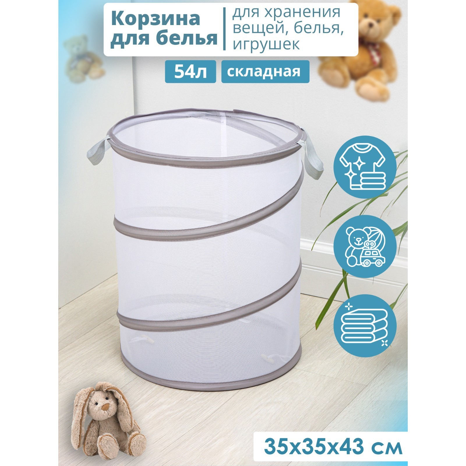 Корзина для белья складная доляна, 35x35x43 см, цвет белый