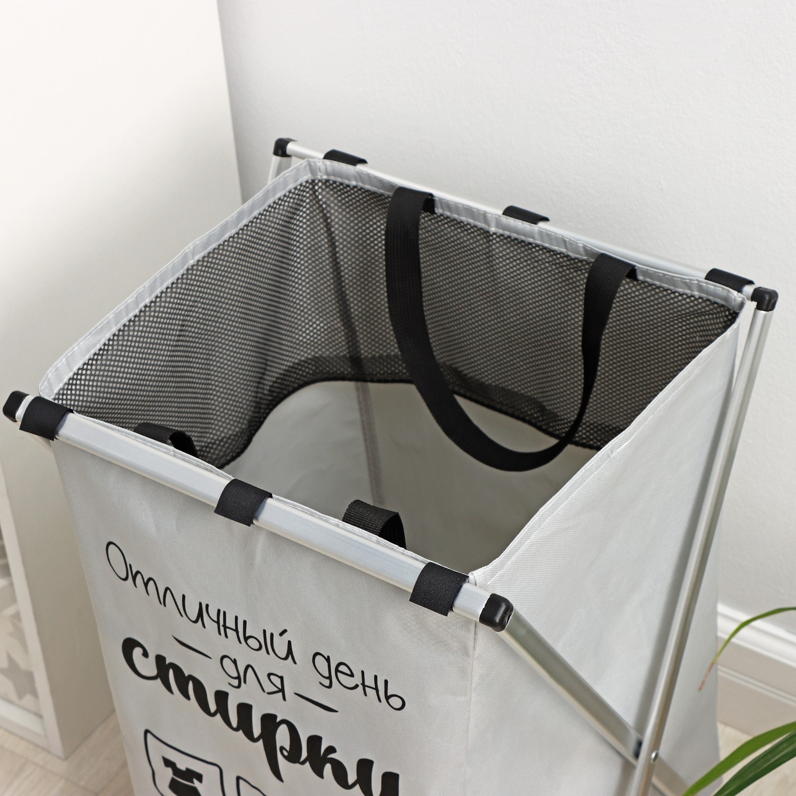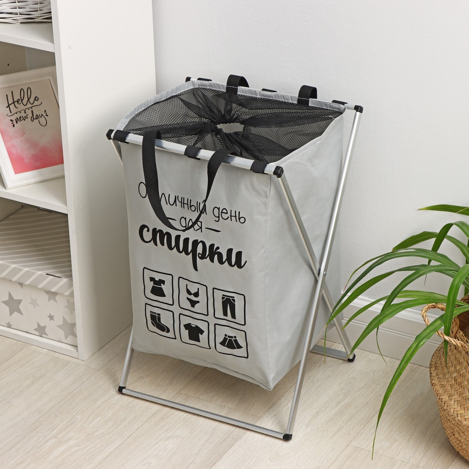 Корзина для белья складная доляна «день стирки», 35x45 см, цвет серый