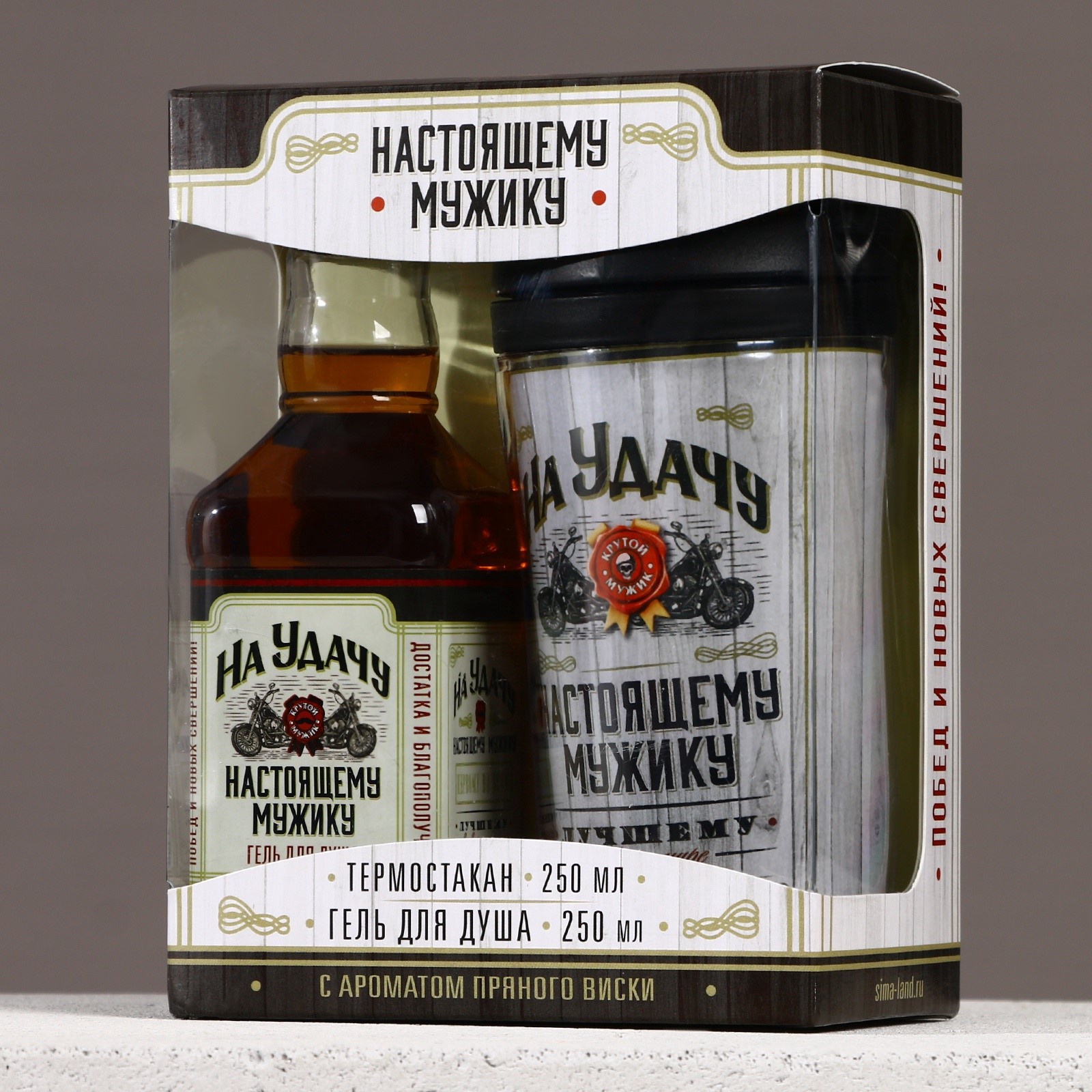Подарочный набор «на удачу». гель для душа виски 250 мл и термостакан 250 мл, чистое счастье